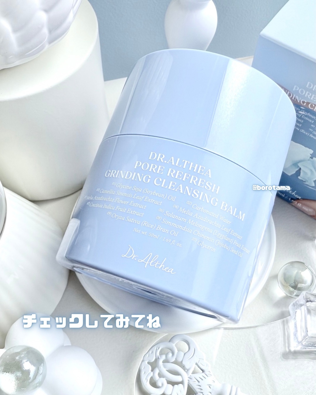 Dr.Altheaのシャーベットクレンジングバームに保湿タイプ出たよ🩵Dr.Althea(ドクターエルシア)『ポアリフレッシュグラインディングクレンジングバーム』ホホバオイル、グアイアズレン、緑茶エキスなどが肌を保湿しながらハリ弾力ケアできる...
