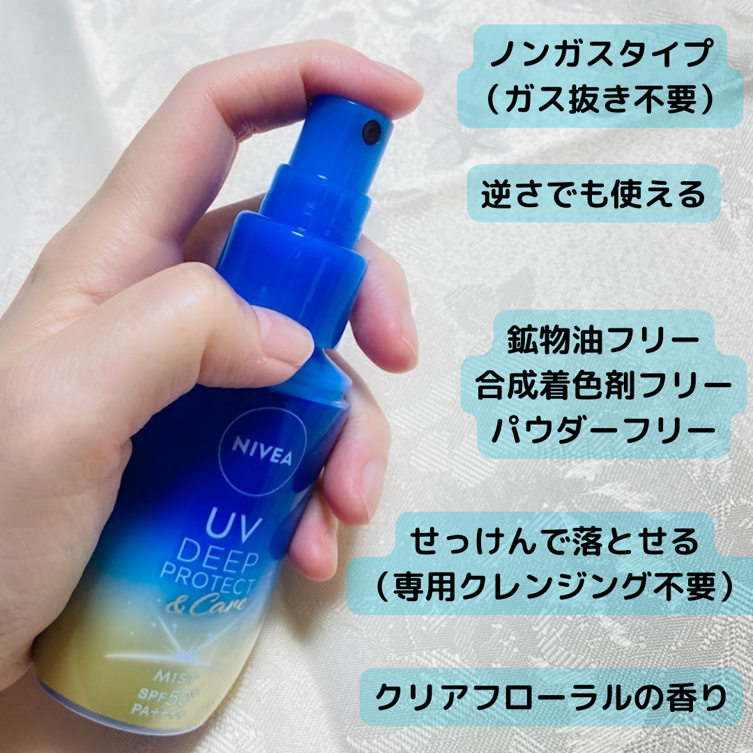 ニベア花王からいただきましたニベアUVディーププロテクト&ケアミルクミスト使ってみました💕SPF50+/PA++++日中の塗り直しに便利なミルクミスト汗・水に強い耐久型ミルキーUVフィルムを採用スーパーウォータープルーフ持ち運びしやすいサイズ...