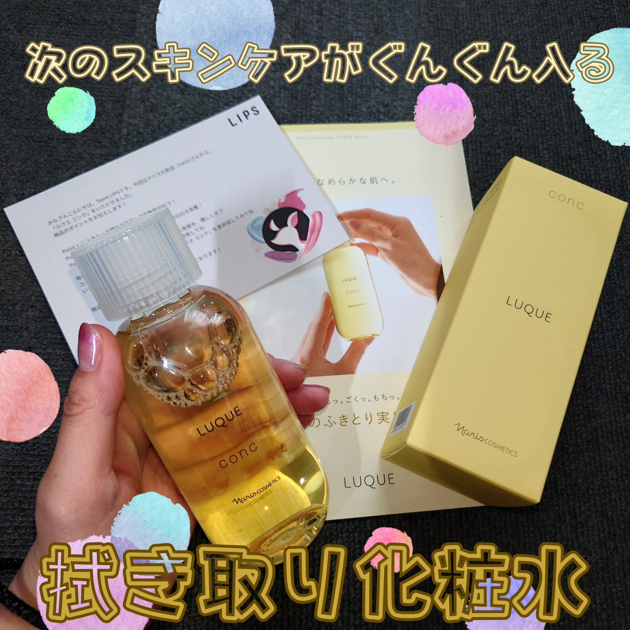 【LIPS】様よりナリス化粧品LUQUEルクエコンク商品提供頂きました。洗顔後すぐに使用するふき取り化粧水肌に潤いをを与えながら古い角質や毛穴の汚れを取り除くそれだけで、スキンケアがしっかりと角質層まで浸透するルクエは着色料を一切使いません。...