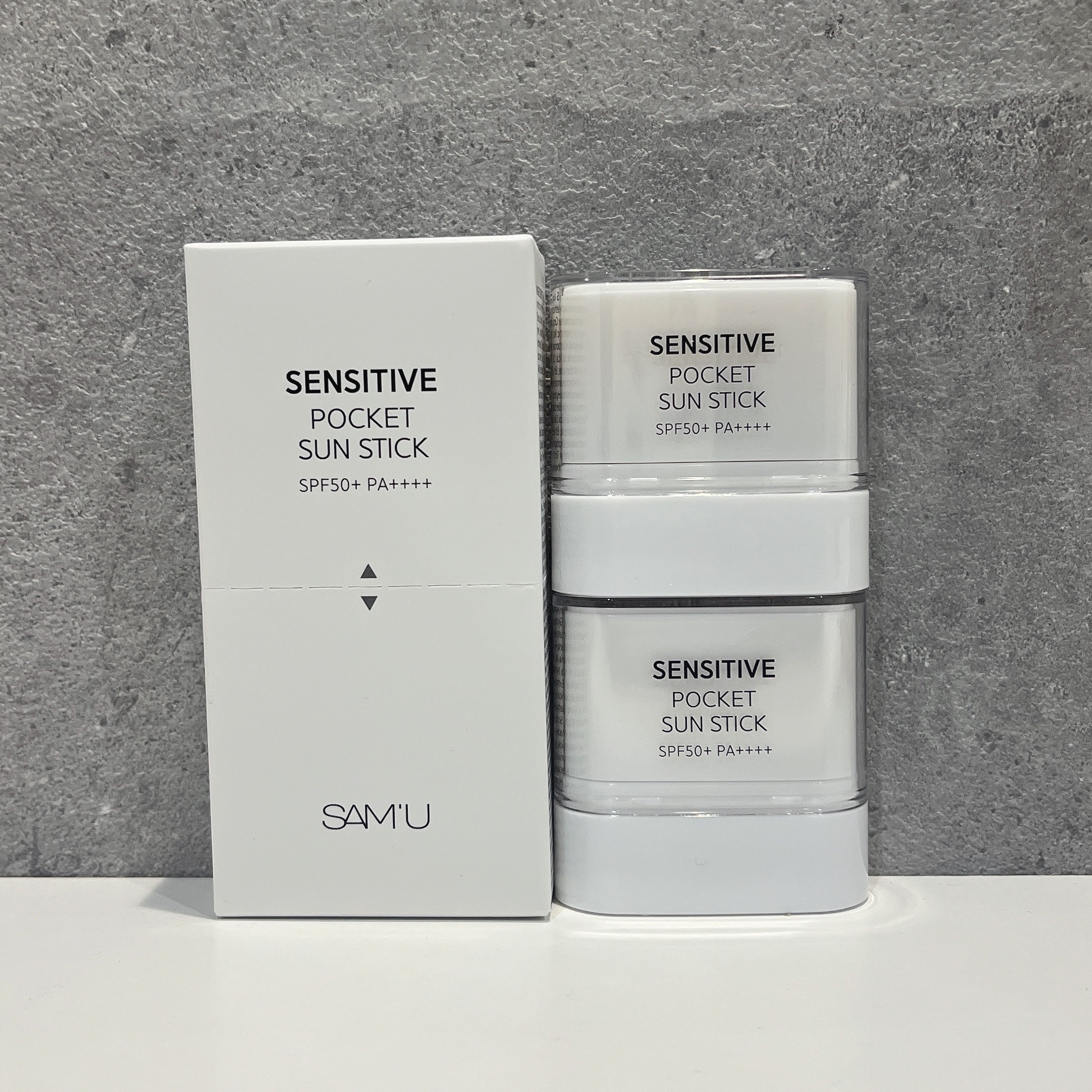 *SAM'UセンシティブポケットサンスティックSPF50+PA++++*名前の通り、ポケットにすっぽり収まるミニサイズの日焼け止めスティック☀️なんと2つに分かれるハーフスティックデザイン✌🏻自分用と友達用でシェアしたり、フェイス用とボディ用...