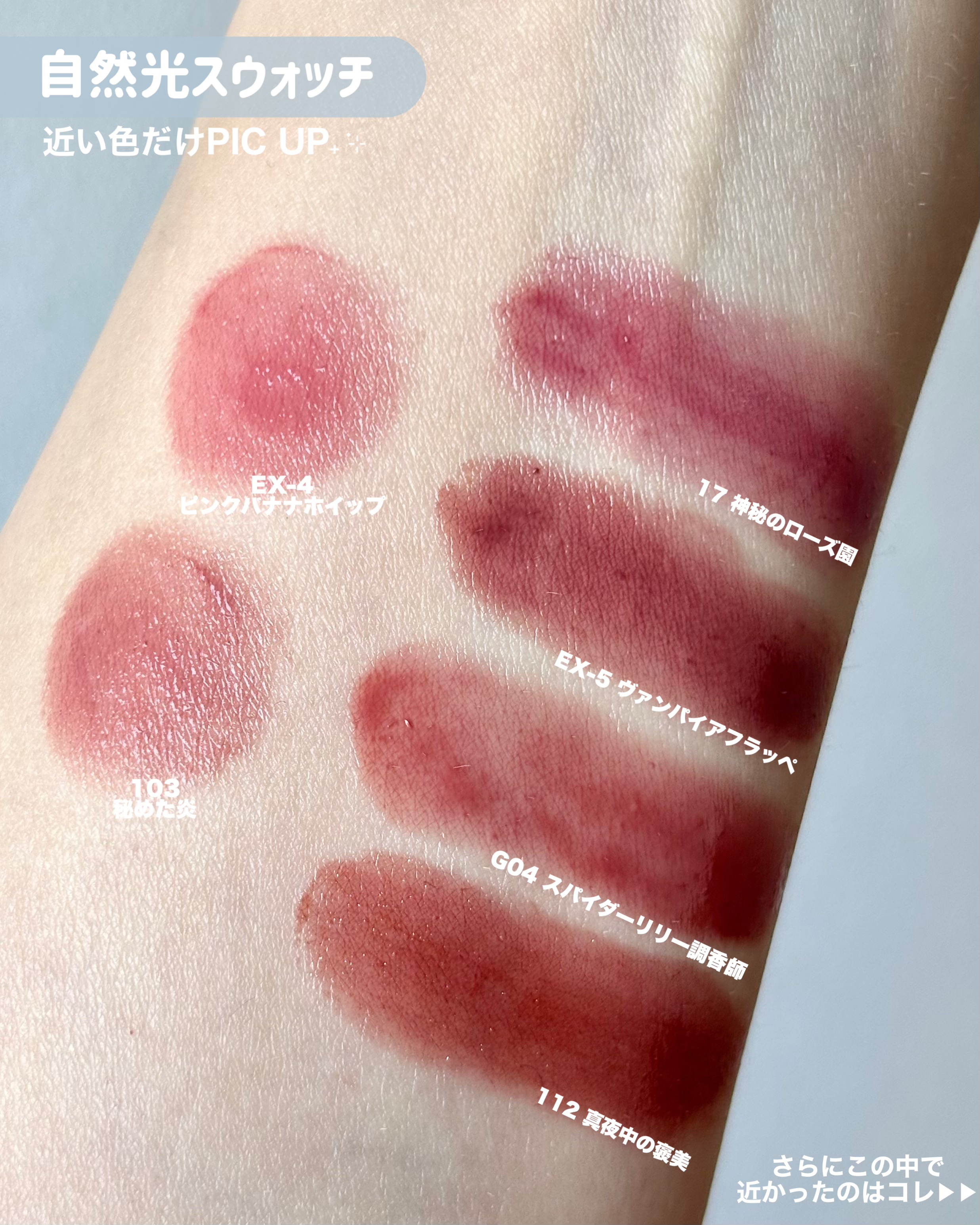 ˗ˏˋ𝙉𝙀𝙒ˎˊ˗リプモン限定色のブルベカラー比較📄५✍🏻̖́-❁❁❁𓂃✍🏻𓈒𓏸 🏷️𝙆𝘼𝙏𝙀〼リップモンスター《数量限定色》 2025.1.25発売 ╍𝖤𝖷-𝟥生焼けパンケーキ ╍𝖤𝖷-𝟦ピンクバナナホイップ…★レビュー色 ╍𝖤𝖷-𝟧ヴァ...