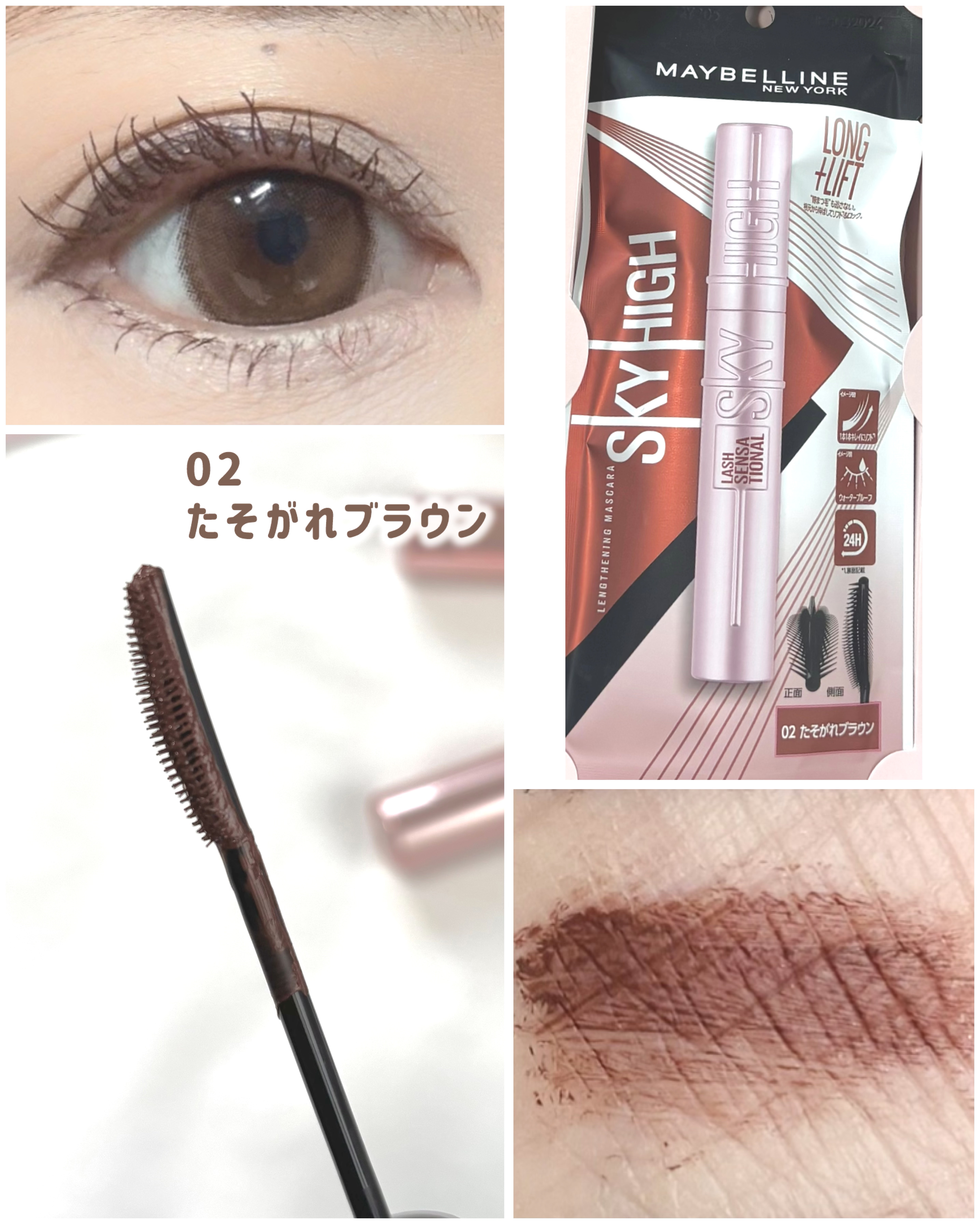 メイベリンスカイハイでまつ毛も目ヂカラもUP👀💕︎✿••••✿ぱっちりロング*1まつ毛を演出する大人気メイベリンスカイハイから愛され雰囲気になれる、新色ブラウンマスカラ"ゆうかげモーブブラウン"が発売になるよ〜っ🤎\スカイハイこんな特...