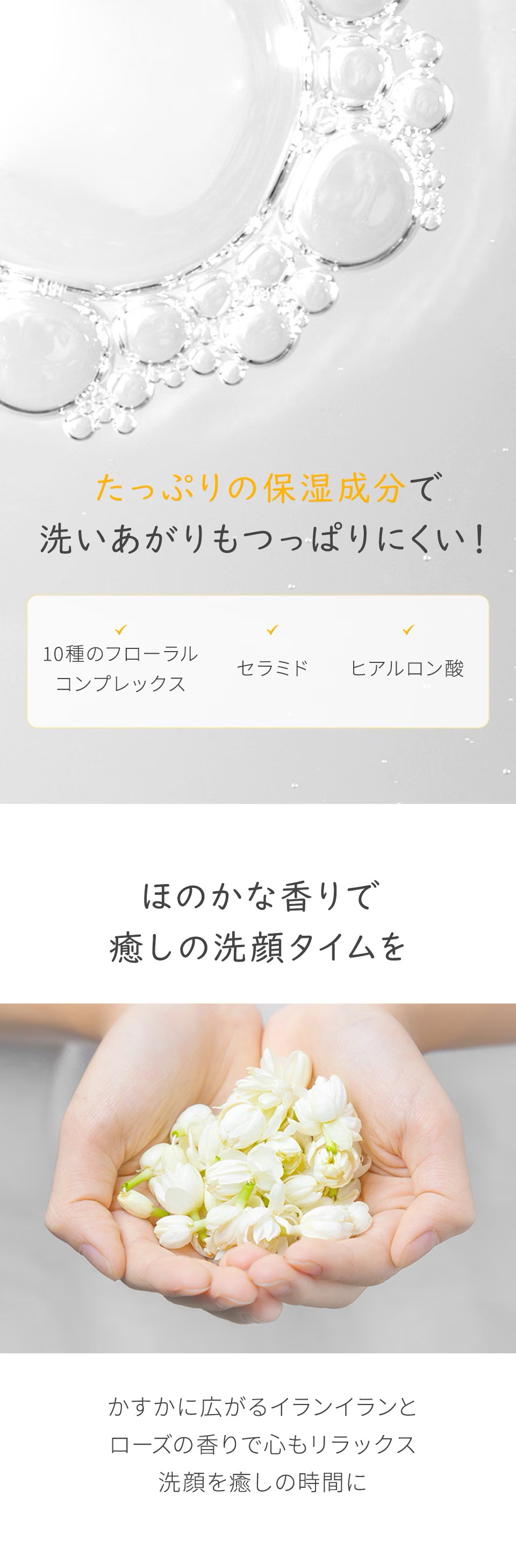 - きめ細かくしっとりともちっとした泡で毛穴汚れもすっきりオフ。 キメ細かい豊富な泡で皮脂や古い角質、詰まった毛穴汚れまですっきり洗い流します。10種のフローラルコンプレックス、肌に似た保湿因子のセラミド、ヒアルロン酸等の保湿成分でディープクレンジング後のお肌もしっかりと保湿し、洗いあがりもしっとり。 細かくもっちりとした繊細な泡で目に見えない毛穴汚れを隅々まで除去。 一目でわかる、もっちりとしたピュア&ディープクレンジングフォームの濃密泡。 【使用方法】 1. 適量を手のひらに取り、水またはぬるま湯でよく泡立てます。 2. 顔全体をやさしくマッサージするように洗います。 3. 水またはぬるま湯で綺麗に洗い流します。