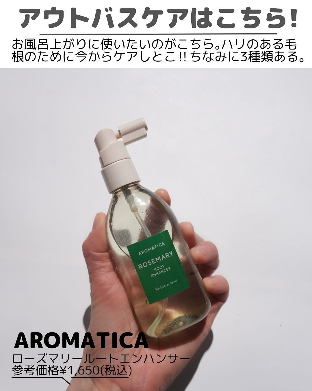 頭皮も角質ケアしてる??AROMATICA(アロマティカ)ローズマリースカルプスクラブ2,310円(税込)165gローズマリールートエンハンサー2,085円(税込)100mlボディだけじゃない!頭皮も角質ケアしてる?「美的」ベストコスメ202...
