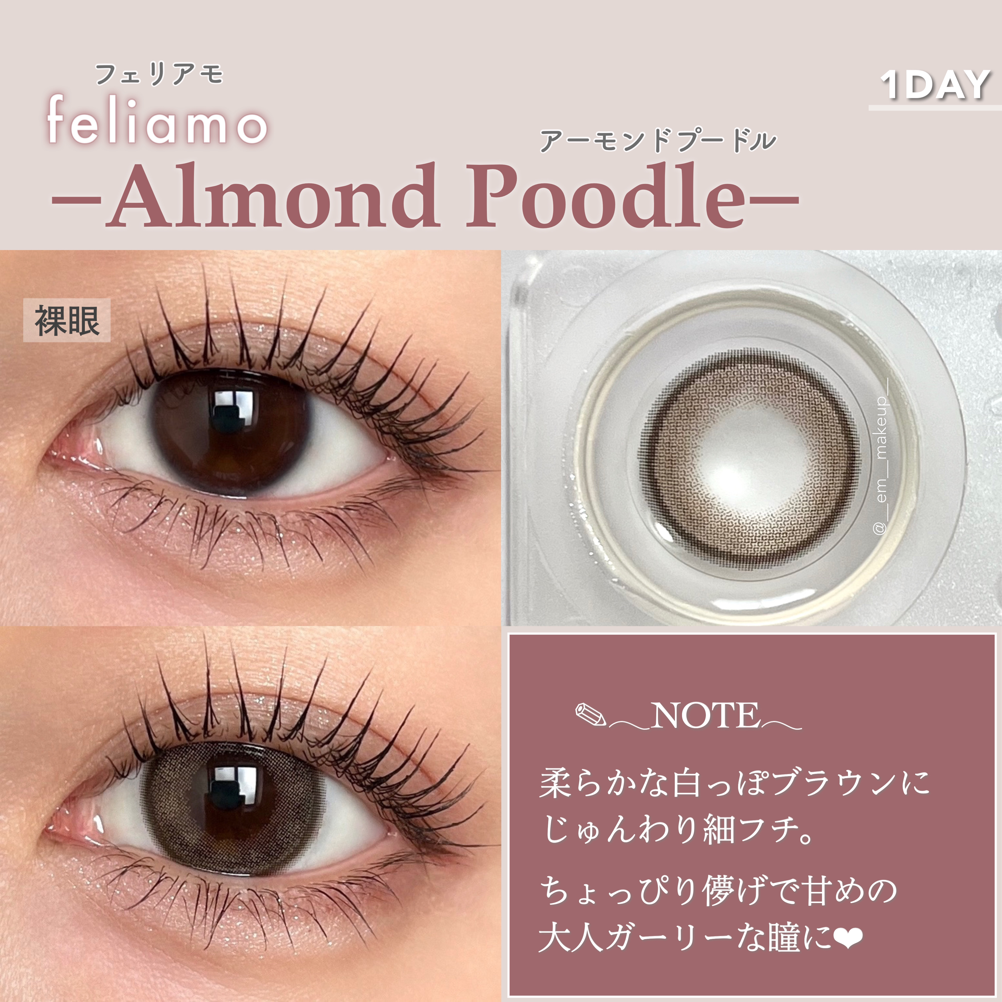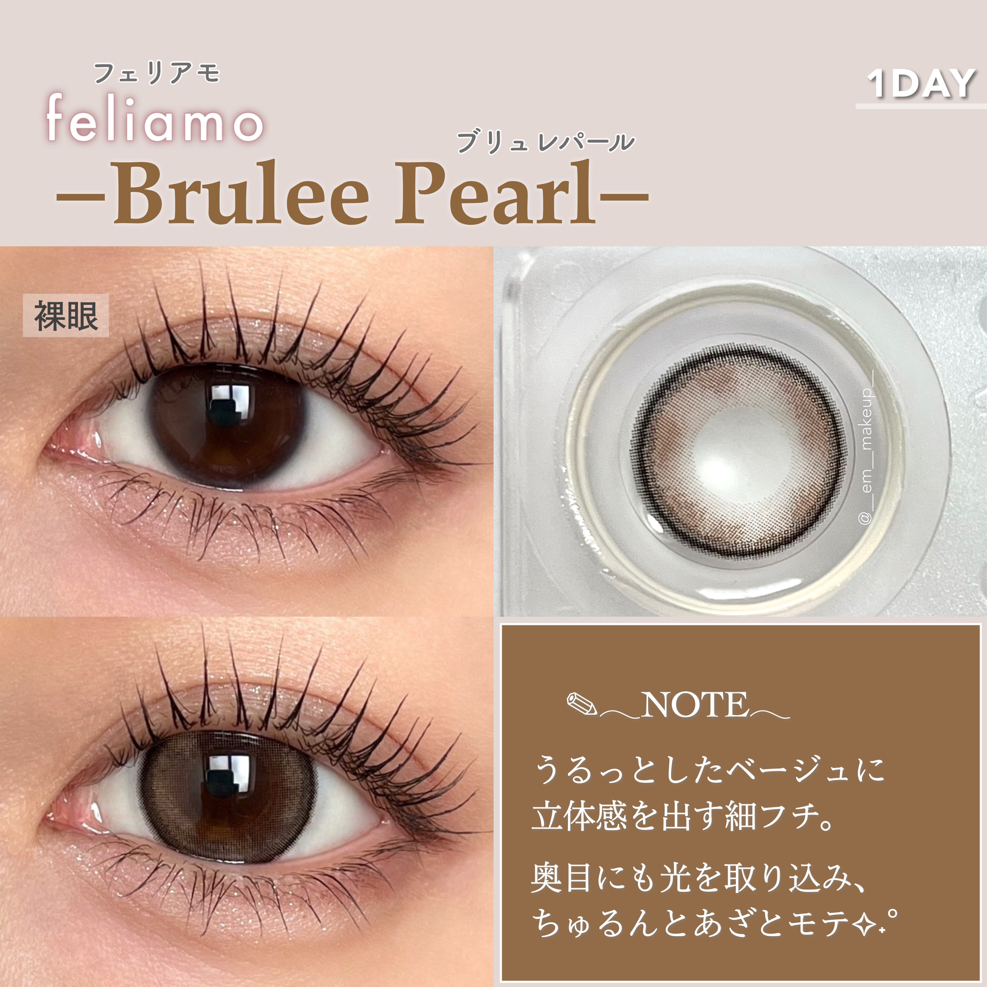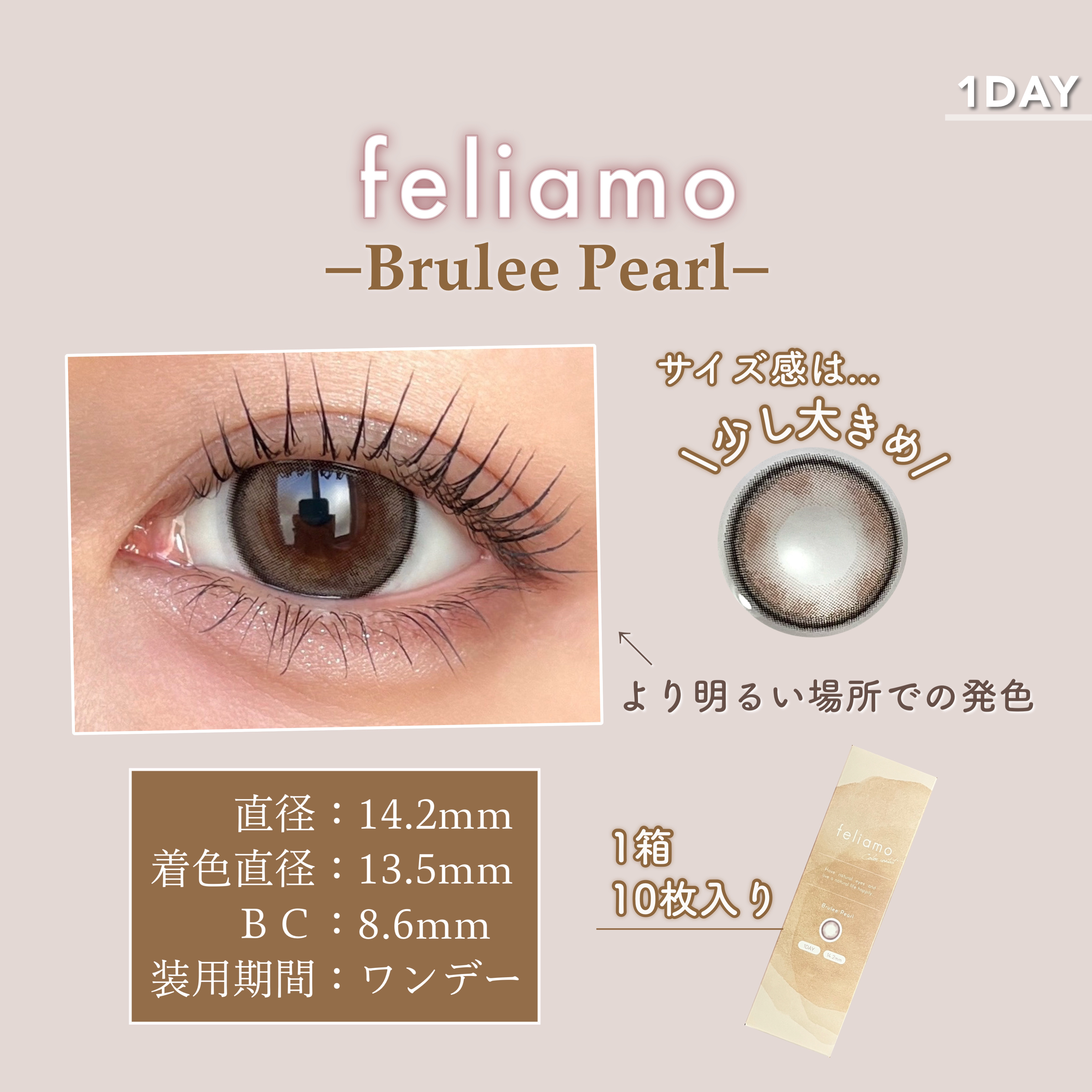 \feliamoから新色でたよ💌/🫧ブリュレパールちゅるちゅるに見えるブラウン×細フチであざとく盛れる清楚系レンズ♥🐩アーモンドプードルほんのり白っぽいグレージュのような色合いでしっかり発色◎大きめの着色直径でしっかり盛れる♥どちらも可愛らし...