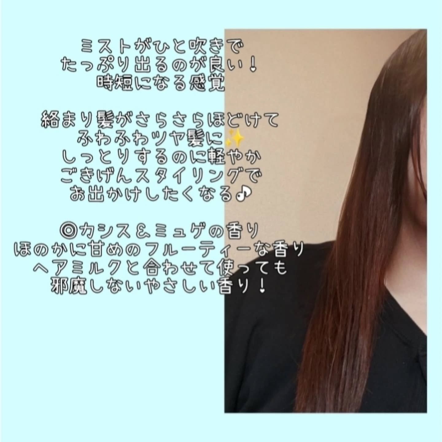 | ヘアケア・スタイリングランキング第53位 | ヘアミストなのできつすぎず、ふわ~っと優しいフローラルな匂いが漂います🍃 | 詳細を見る | |