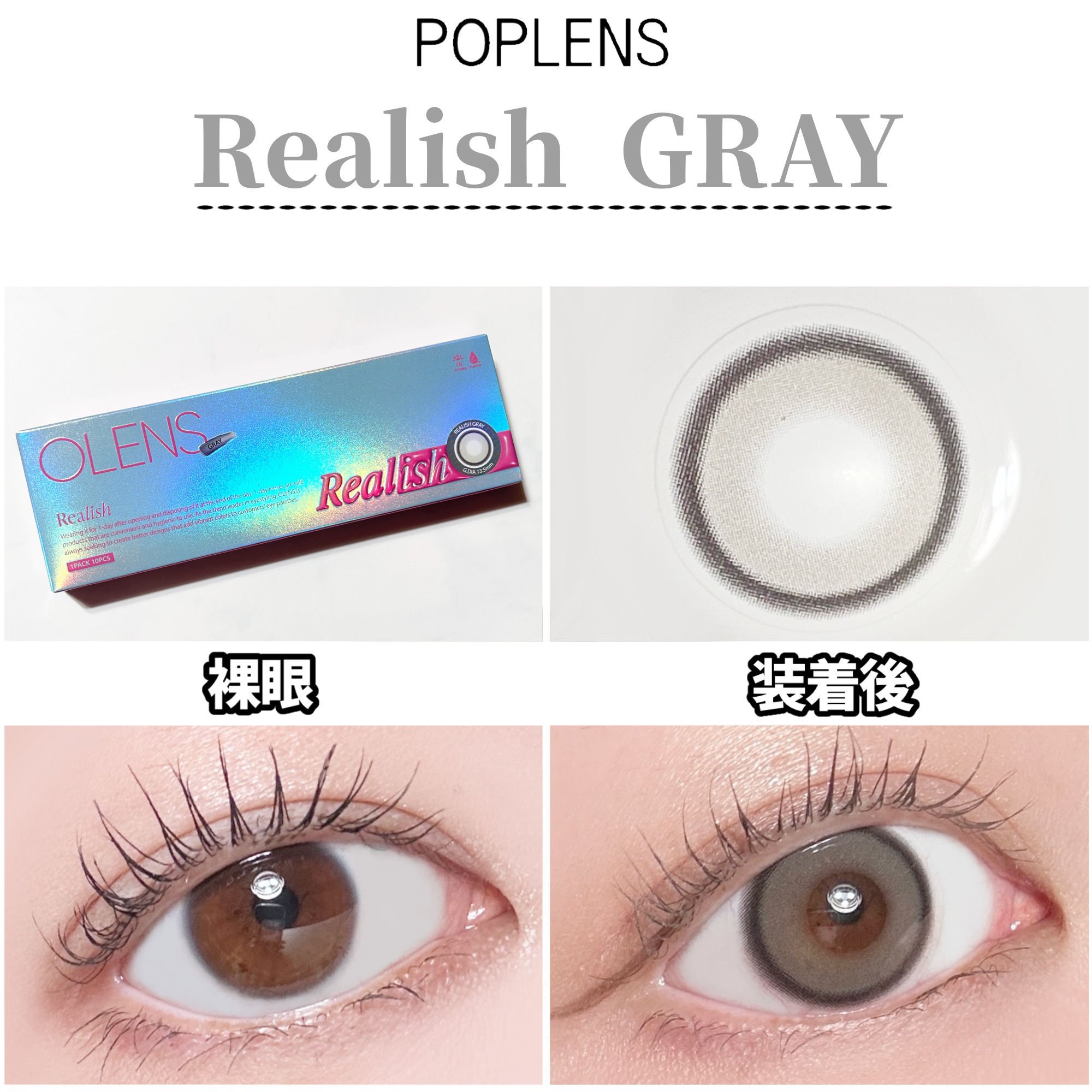 【OLENSから新作でた!デカ目カラコン👀】𖡼.𖤣𖥧𖡼.𖤣𖥧𖡼.𖤣𖥧𖡼.𖤣𖥧𖡼.𖤣𖥧𖡼.𖤣𖥧𖡼.𖤣𖥧𖡼.𖤣𖥧𖡼.𖤣𖥧𖡼.𖤣𖥧𖡼.👑RealishGray,Brown1Day(1箱10枚入り)DIA14.5mm着色直径13,5mm含水率48%👑...
