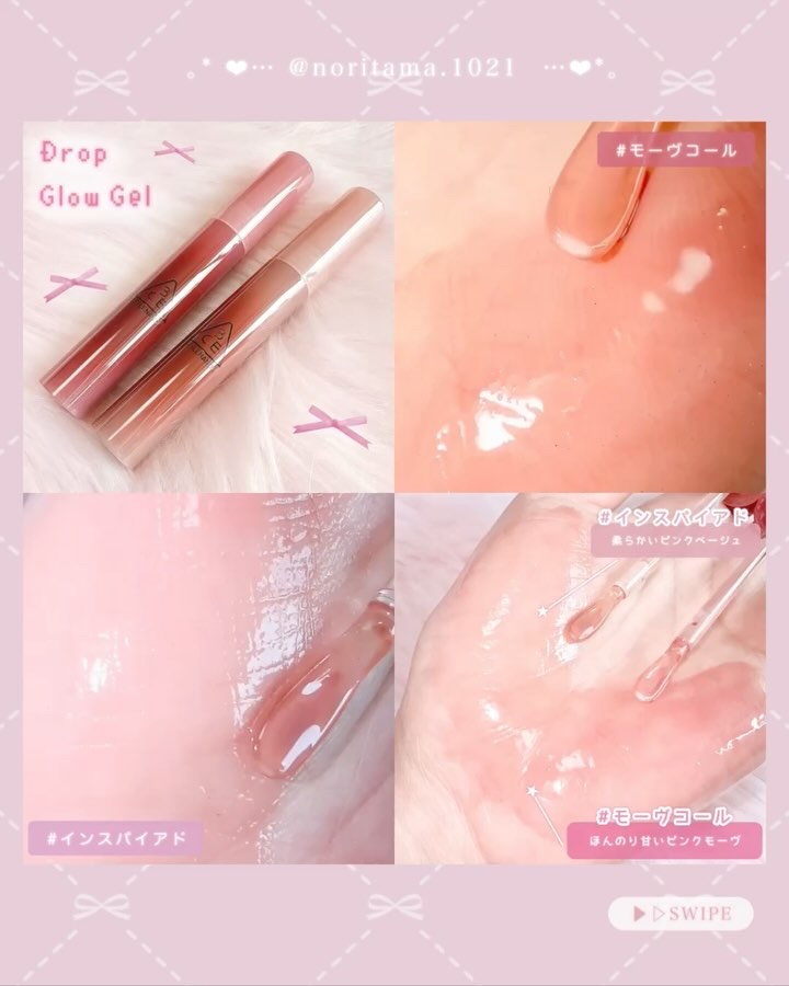 新感覚✨6色のカラーが30%、70%の2パターン展開で濃度が選べる😳 プランパー効果があるから、ボリューム感がでて縦じわの目立たない理想的なうるうるリップに… 発色はもちろん、グロス特有のベタつきがなくぷるんと仕上げてくれて乾燥しない使い心地のよさもお気に入り🥹💓
