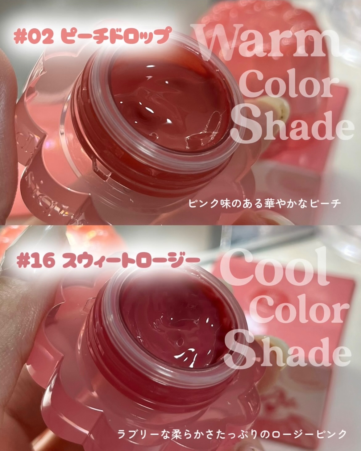 - プリンのような新感覚のチューイングテクスチャーに澄んだカラー感が加わったリップ&チーク。 ぷるぷるとしたゼリーのようなツヤ感が唇と頬にほのかに染まるウォーターリーグロウリップ&チーク。 甘いプリンのようにぷるぷるとした新感覚のチューイングテクスチャーで、べたつかず、なめらかに密着し唇にしっとりとした保湿感を与えます。 イエベ、ブルベの自分の肌トーンごとに使いやすい20色の多彩なカラーバリエーション、透明感のある澄んだカラーと鮮やかな発色、重ね塗りすればするほどあふれ出す、ほのかな水光リップへ導きます。 可愛いプリンのようなラブリーなパッケージで持ち運びが簡単!パッケージの中にはミニブラシが付いていて、衛生的に使えます。 ※ふんわりとしたゼリーテクスチャーの特徴により、固まりが生じることがありますので、薄くレイヤーを重ねて十分に塗り伸ばしてください。