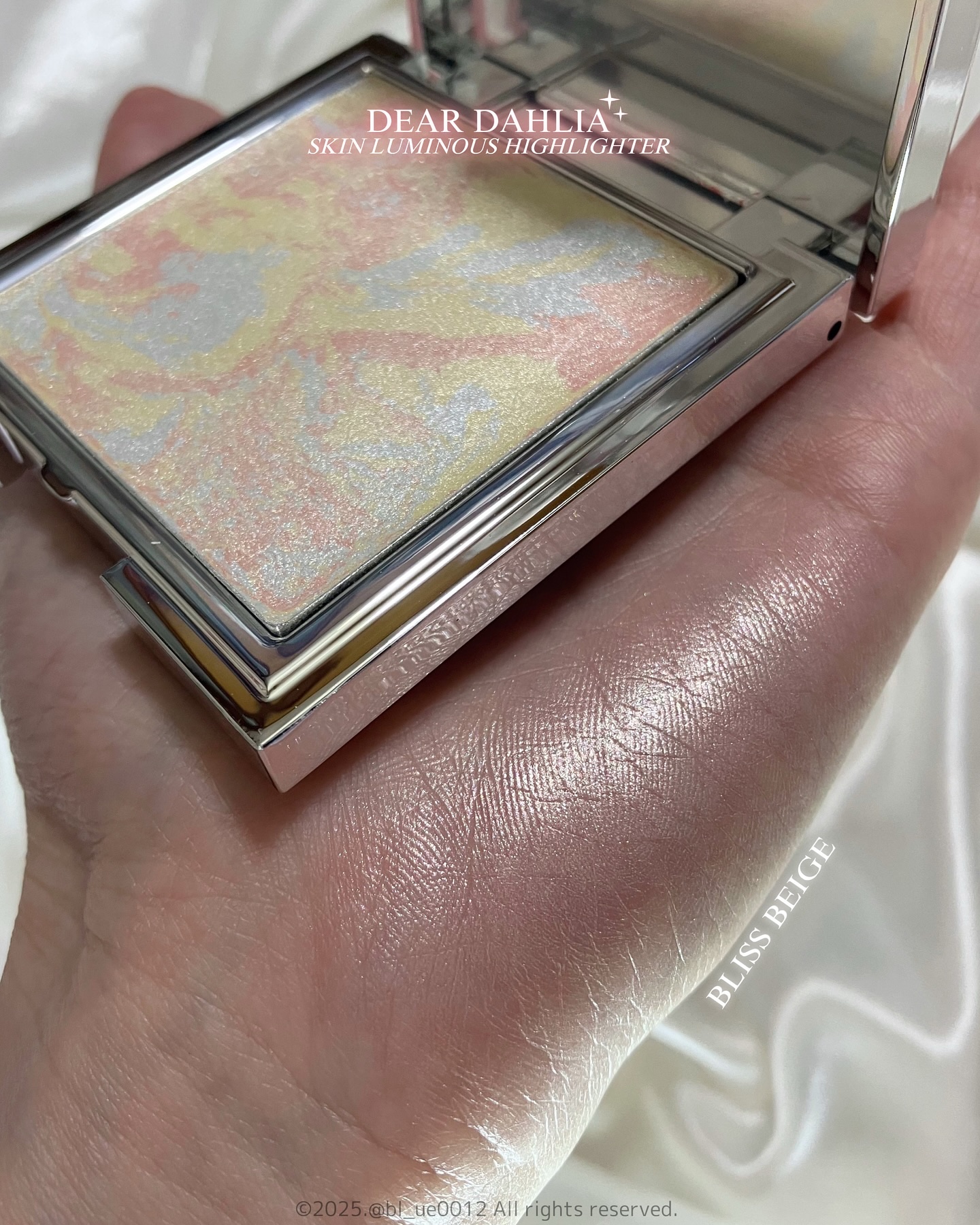 さっとひと塗りするだけででツヤ肌に!DEARDAHLIA(ディアダリア)【スキンルミナスハイライター】ブリスベージュほんまパケ可愛すぎない⁇🤍🤍🤍つけ足しても溜まらないで密着し、”初心者も簡単に使える”ハイライター✨3色のマーブルブレンディン...