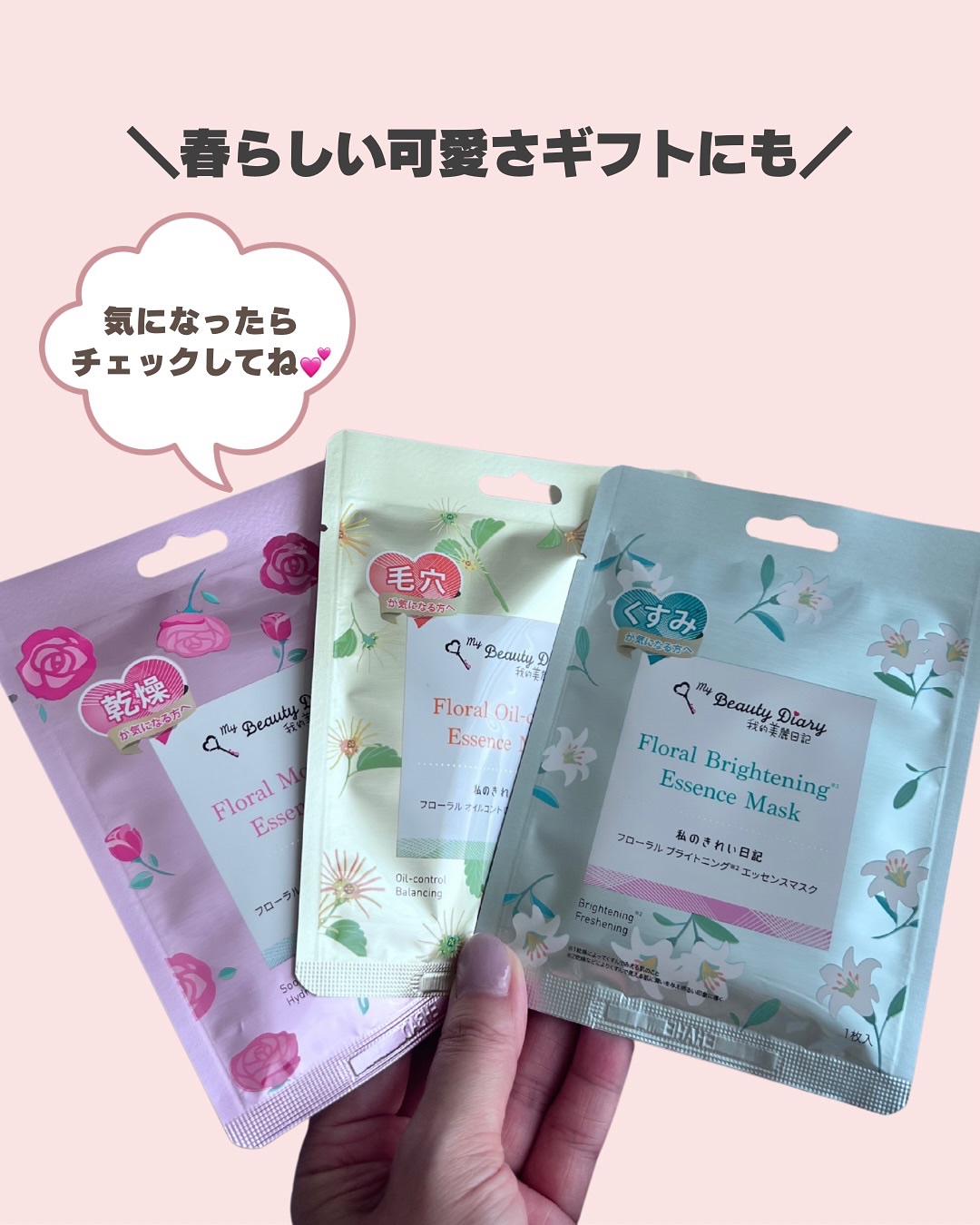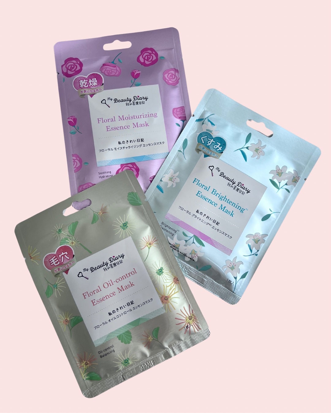 台湾で大人気のシートマスクブランド「我的美麗⽇記(私のきれい⽇記)を使ってみました!貴重な植物花エキスの成分と「保湿、くすみ*、肌の引き締め」美容液を融合した「花シリーズ」より【フローラルエッセンスマスク3枚お試しセット】*乾燥によってくすん...