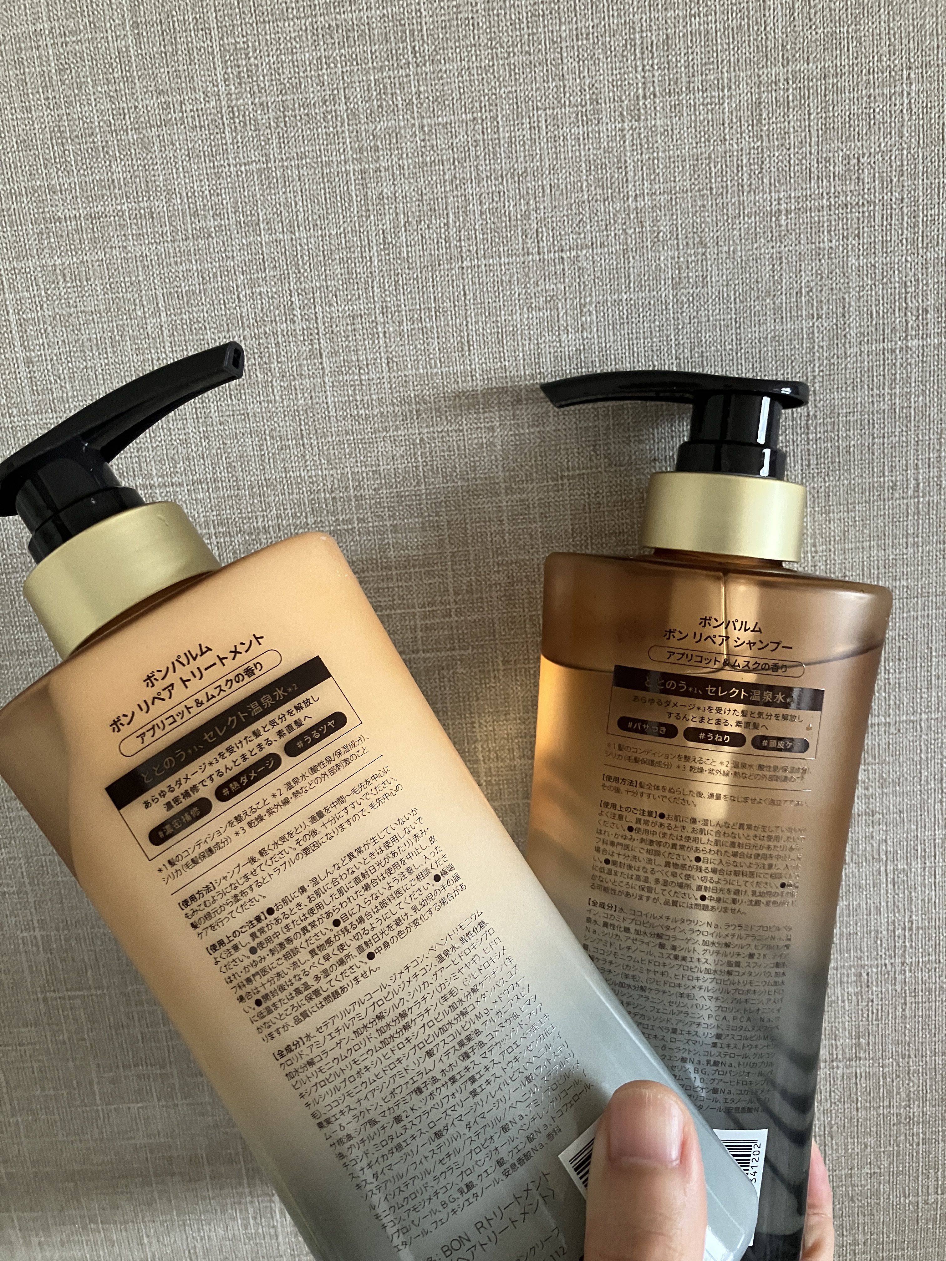 - <ボンリペアシャンプー/ボトル> 水、ココイルメチルタウリンNa、ラウラミドプロピルベタイン、コカミドプロピルベタイン、ラウロイルメチルアラニンNa、温泉水、異性化糖、加水分解コラーゲン、加水分解シルク、ヒアルロン酸Na、シリカ、アゼライン酸、海シルト、グリチルリチン酸2K、ナイアシンアミド、レチノール、ユズ果実エキス、リン脂質、スフィンゴ糖脂質、ココジモニウムヒドロキシプロピル加水分解コメタンパク、加水分解ケラチン(カシミヤヤギ)、ヒドロキシプロピルトリモニウム加水分解ケラチン(羊毛)、(ジヒドロキシメチルシリルプロポキシ)ヒドロキシプロピル加水分解ケラチン(羊毛)、ヘマチン、アルギニン、アスパラギン酸、グリシン、アラニン、セリン、バリン、プロリン、トレオニン、イソロイシン、ヒスチジン、フェニルアラニン、PCA、PCA-Na、ツボクサ葉エキス、マデカッソシド、アシアチコシド、ミロタムヌスフラベリフォリア葉エキス、アロエベラ葉エキス、リン酸アスコルビルMg、モモ葉エキス、カキ果実エキス、ローズマリー葉エキス、トウキンセンカ花エキス、メドウフォーム-δ-ラクトン、コレステロール、グルコシルルチン、リンゴ酸、クエン酸、クエン酸Na、乳酸Na、トリ(カプリル酸/カプリン酸)グリセリル、グリセリン、BG、プロパンジオール、ペンチレングリコール、ポリクオタニウム-10、グアーヒドロキシプロピルトリモニウムクロリド、ラウラミノプロピオン酸Na、コカミドメチルMEA、セテアレス-60ミリスチルグリコール、エタノール、EDTA-2Na、トコフェロール、フェノキシエタノール、安息香酸Na、硫酸亜鉛、BHT、塩化Na、香料 <ボンリペアトリートメント/ボトル> 水、セテアリルアルコール、ジメチコン、ベヘントリモニウムクロリド、アミノエチルアミノプロピルジメチコン、温泉水、異性化糖、加水分解コラーゲン、加水分解シルク、シリカ、グアーヒドロキシプロピルトリモニウムクロリド、加水分解ケラチン(カシミヤヤギ)、ヒドロキシプロピルトリモニウム加水分解ケラチン(羊毛)、(ジヒドロキシメチルシリルプロポキシ)ヒドロキシプロピル加水分解ケラチン(羊毛)、ココジモニウムヒドロキシプロピル加水分解コメタンパク、ユズ果実エキス、ナイアシンアミド、リン酸アスコルビルMg、メドウフォーム-δ-ラクトン、ヒポファエラムノイデス果実油、アルガニアスピノサ核油、シア脂、マカデミア種子油、ホホバ種子油、コメヌカ油、ヒマシ油、グリチルリチン酸2K、ツボクサ葉エキス、マデカッソシド、アシアチコシド、ミロタムヌスフラベリフォリア葉エキス、アロエベラ葉エキス、ナギイカダ根エキス、ローズマリー葉エキス、トウキンセンカ花エキス、ダイマージリノール酸ダイマージリノレイルビス(ベヘニル/イソステアリル/フィトステリル)、ダイマージリノール酸(フィトステリル/イソステアリル/セチル/ステアリル/ベヘニル)、ステアルトリモニウムクロリド、ラウラミノプロピオン酸Na、アミノプロピルジメチコン、アモジメチコン、プロパンジオール、ペンチレングリコール、イソプロパノール、BG、乳酸、クエン酸、クエン酸Na、トコフェロール、エタノール、フェノキシエタノール、安息香酸Na、香料 <ボンリペアシャンプー/リフィル> 水、ココイルメチルタウリンNa、ラウラミドプロピルベタイン、コカミドプロピルベタイン、ラウロイルメチルアラニンNa、温泉水、異性化糖、加水分解コラーゲン、加水分解シルク、ヒアルロン酸Na、シリカ、アゼライン酸、海シルト、グリチルリチン酸2K、ナイアシンアミド、レチノール、ユズ果実エキス、リン脂質、スフィンゴ糖脂質、ココジモニウムヒドロキシプロピル加水分解コメタンパク、加水分解ケラチン(カシミヤヤギ)、ヒドロキシプロピルトリモニウム加水分解ケラチン(羊毛)、(ジヒドロキシメチルシリルプロポキシ)ヒドロキシプロピル加水分解ケラチン(羊毛)、ヘマチン、アルギニン、アスパラギン酸、グリシン、アラニン、セリン、バリン、プロリン、トレオニン、イソロイシン、ヒスチジン、フェニルアラニン、PCA、PCA-Na、ツボクサ葉エキス、マデカッソシド、アシアチコシド、ミロタムヌスフラベリフォリア葉エキス、アロエベラ葉エキス、リン酸アスコルビルMg、モモ葉エキス、カキ果実エキス、ローズマリー葉エキス、トウキンセンカ花エキス、メドウフォーム-δ-ラクトン、コレステロール、グルコシルルチン、リンゴ酸、クエン酸、クエン酸Na、乳酸Na、トリ(カプリル酸/カプリン酸)グリセリル、グリセリン、BG、プロパンジオール、ペンチレングリコール、ポリクオタニウム-10、グアーヒドロキシプロピルトリモニウムクロリド、ラウラミノプロピオン酸Na、コカミドメチルMEA、セテアレス-60ミリスチルグリコール、エタノール、EDTA-2Na、トコフェロール、フェノキシエタノール、安息香酸Na、硫酸亜鉛、BHT、塩化Na、香料 <ボンリペアトリートメント/リフィル> 水、セテアリルアルコール