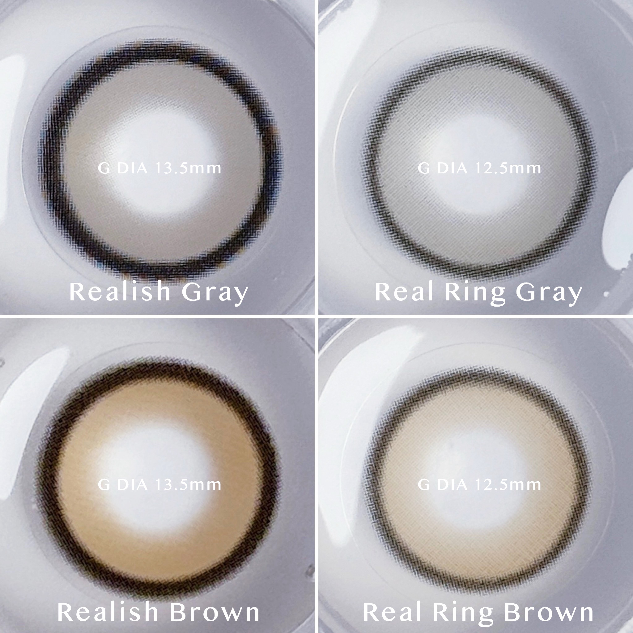 \OLENS新作デカ目カラコン比較🫶🏼🖤/▷OLENS■RealishGray、Brown🆕1Day(1箱10枚入り)DIA14.5mmGDIA13.5mmWATER48%透明感のあるトーンアップカラーと太フチでラブリーな目元を演出する#デカ...