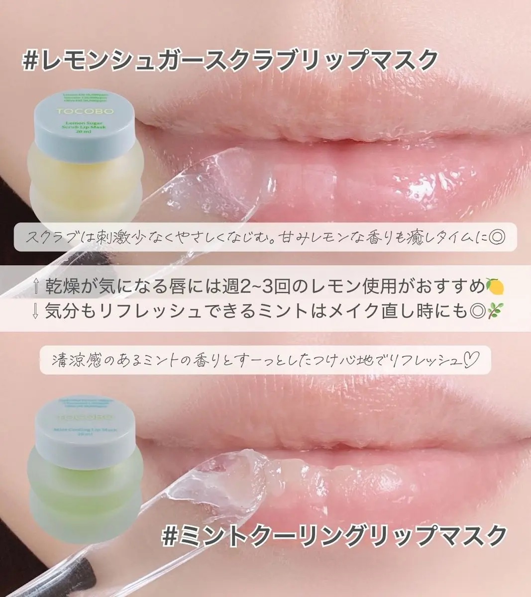 \スペシャルリップケアに/TOCOBOのリップマスクTOCOBOのリップスクラブが美味しかった!😂全部で4種類あるのですが今回はそのうち2種類を紹介します📝【紹介アイテム】🍋レモンシュガースクラブリップマスク/TOCOBO🌿ミントクーリングリ...