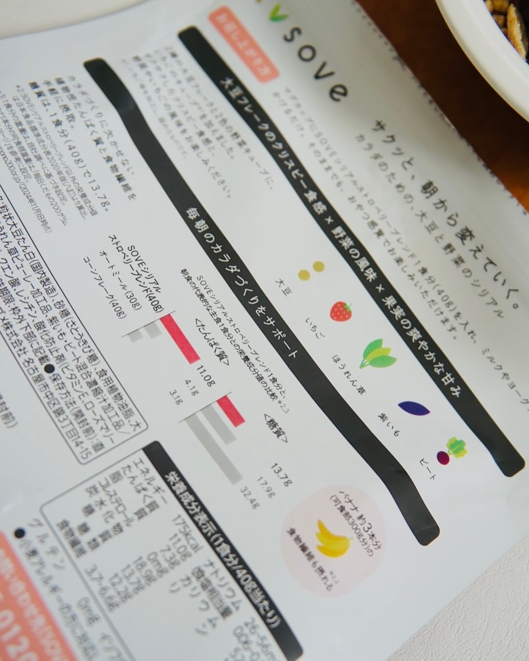 カゴメ(株)プラントベースフードブランドの【SOVE様】より当選品です🌱✨️【大豆フレークSOVE(ソブ)オリジナル】をいただきました🌱😋🥣パッケージもお箱もナチュラルで可愛いです🌱😍こちらはカラダづくりに欠かせない🌱植物性たんぱく質🌱食物繊...