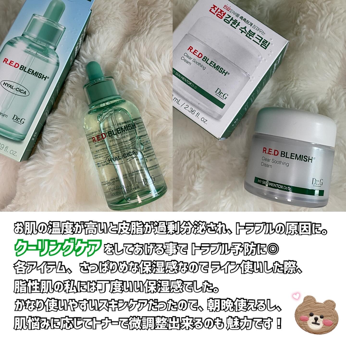 【Dr.Gレッドブレミッシュクリアスージングクリーム/レッドブレミッシュヒアルシカ水分セラム】Dr.GのREDBLEMISHラインに待望のセラムが登場!クリーム同様、癖のない使用感でどんな場面でも使いやすそう😍ひんやりするからほてった肌にぴっ...