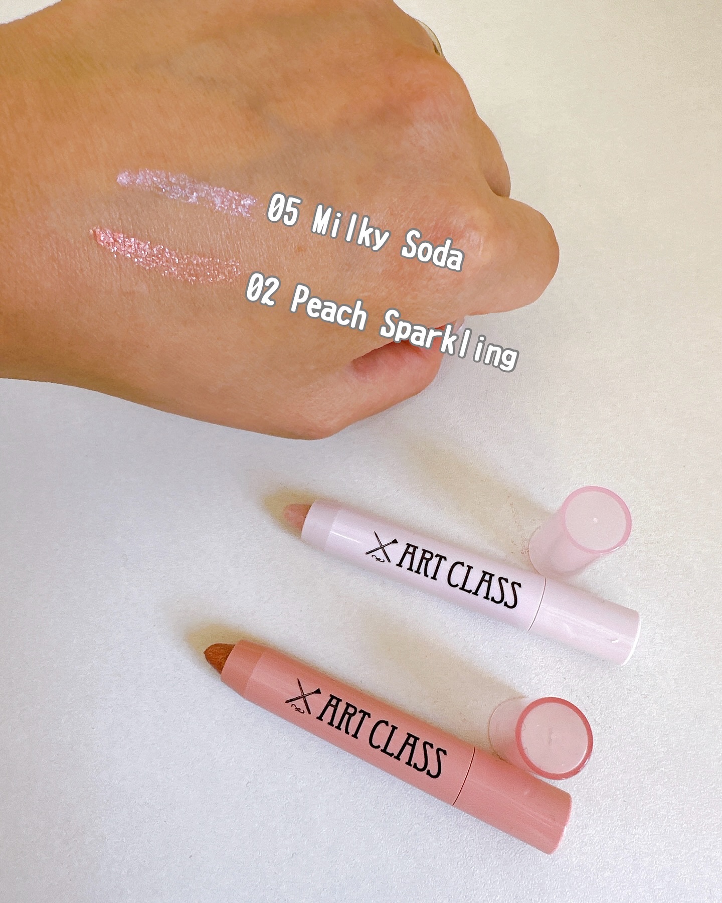 toocoolforschool新作のアートクラスアイグリッツ✨01バブリーエンジェル05ミルキーソーダを使ってみたよ🐱気になってたから嬉しい🫣😭🩷🩷フロッタージュペンシルと一緒に使うと、メイクアップの完成度がさらに高まるあらフロッタージュペ...