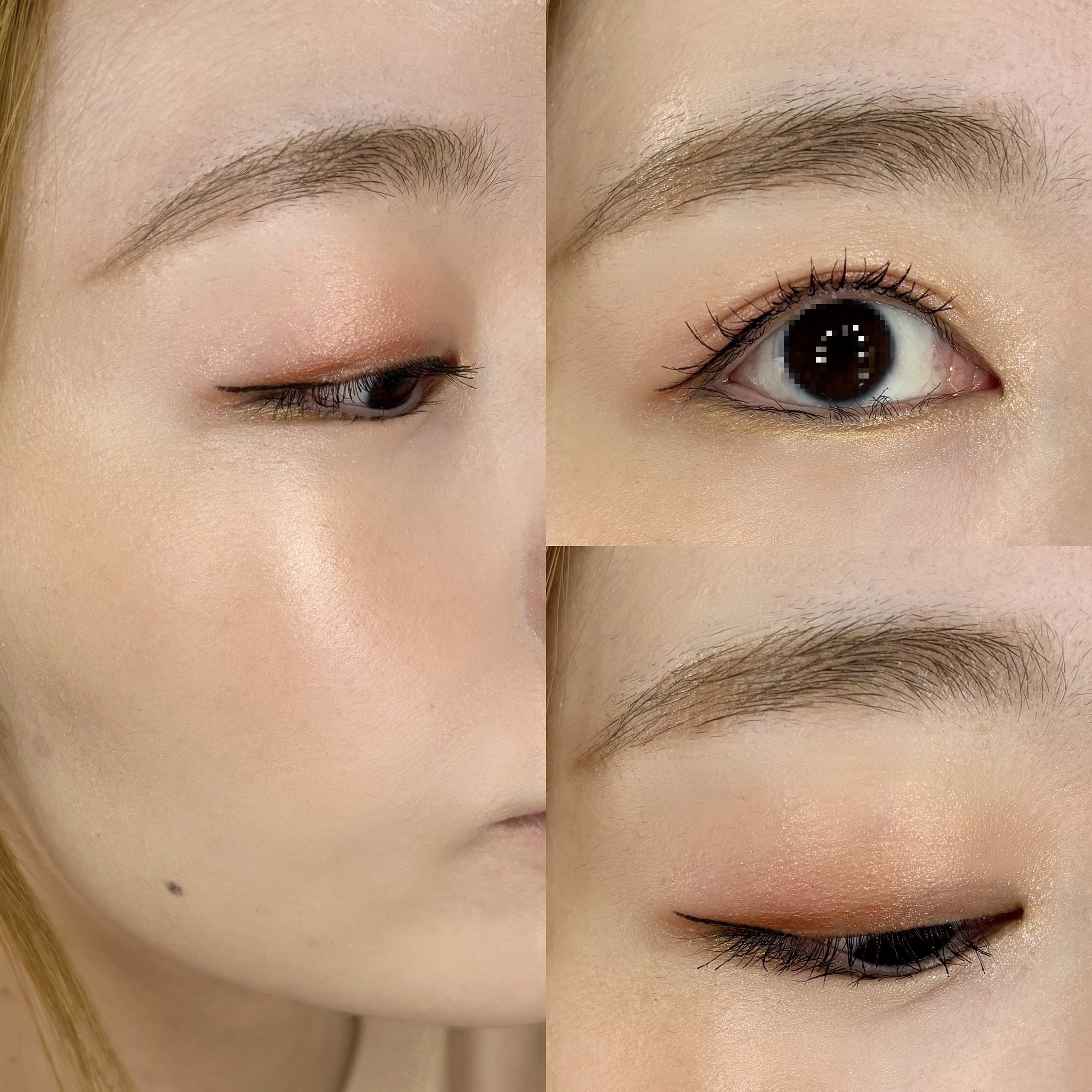 最後に左下のカラーを瞼全体にのせたんだけど、思ったより高発色でくすみすぎてしまった😵 左上のピンクとか存在してなかったかのように色が見えなくなってしまいました笑 次使う時は左下はちょっと控えめで使おうかな…なんて思っています。 アイライナーもキットの中のものを使用。色相性良すぎるし、コシがあってとても描きやすかった! SUQQUのアイライナーは初めて使ったんだけど、お気に入りになりました🤩