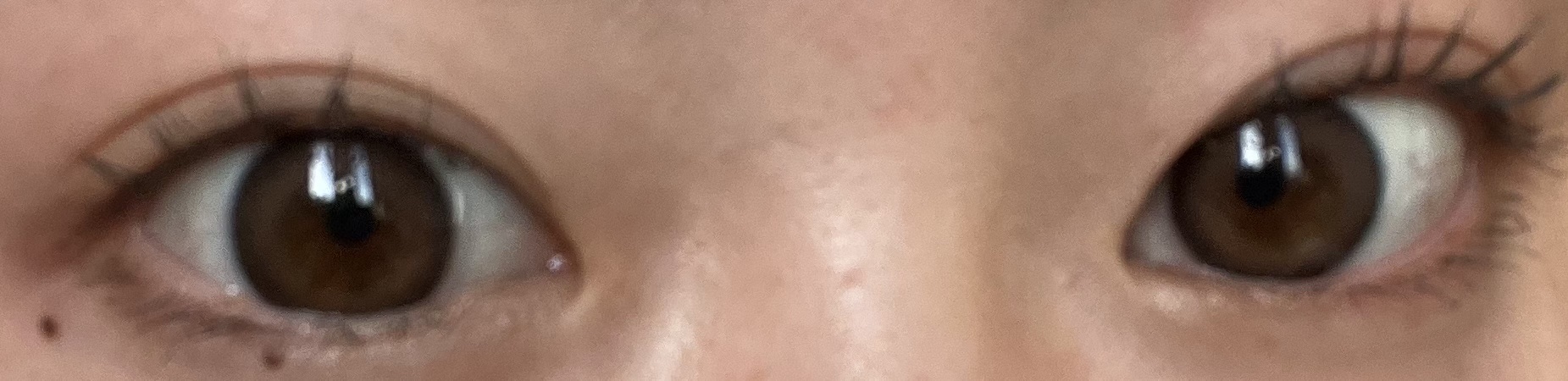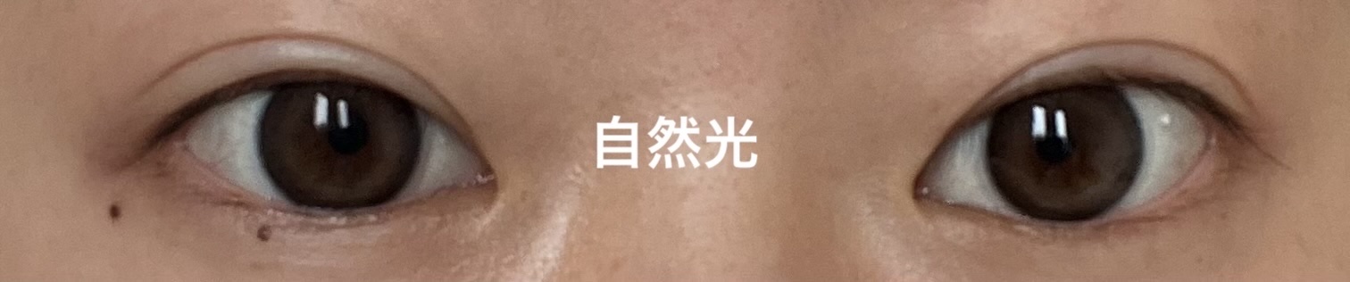 LARMEバターココア1month着色直径13.6DIA14.2外側から内側にかけて茶色くなってる裸眼が茶色いから外側の黒が目立つけど、裸眼が黒い人は馴染みやすいかも?目に光はしっかり入るなんなら目に光入りやすい全然宇宙人にはならないから安心...
