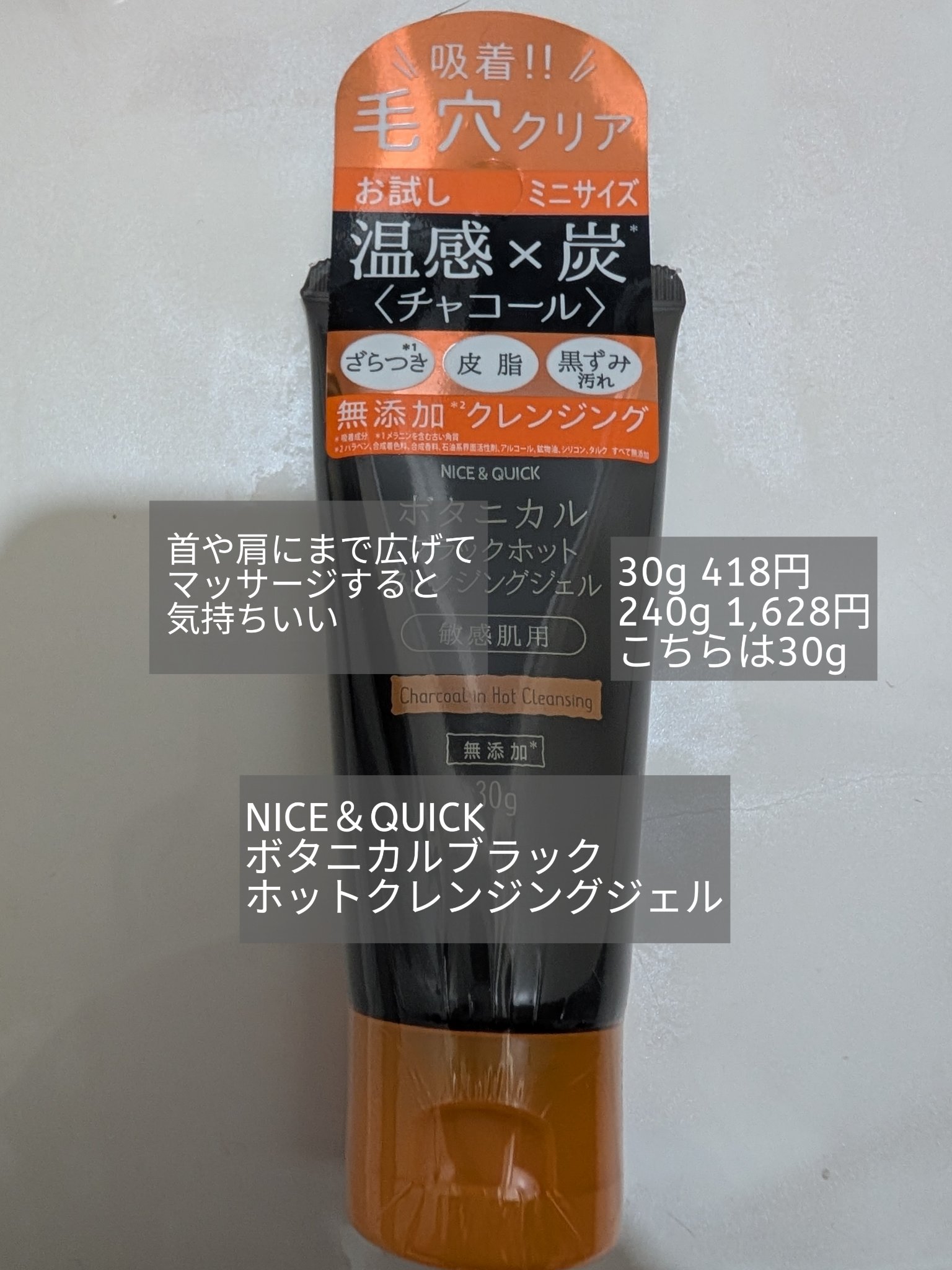 ※2024年使用品クレンジング・商品名NICE&QUICK(ナイス&クイック) ボタニカルホットクレンジングジェル ボタニカルブラックホットクレンジングジェルミニ30g・値段定価418円(ブラック355円で購入)・購入場所アインズ&トルペ(ホ...
