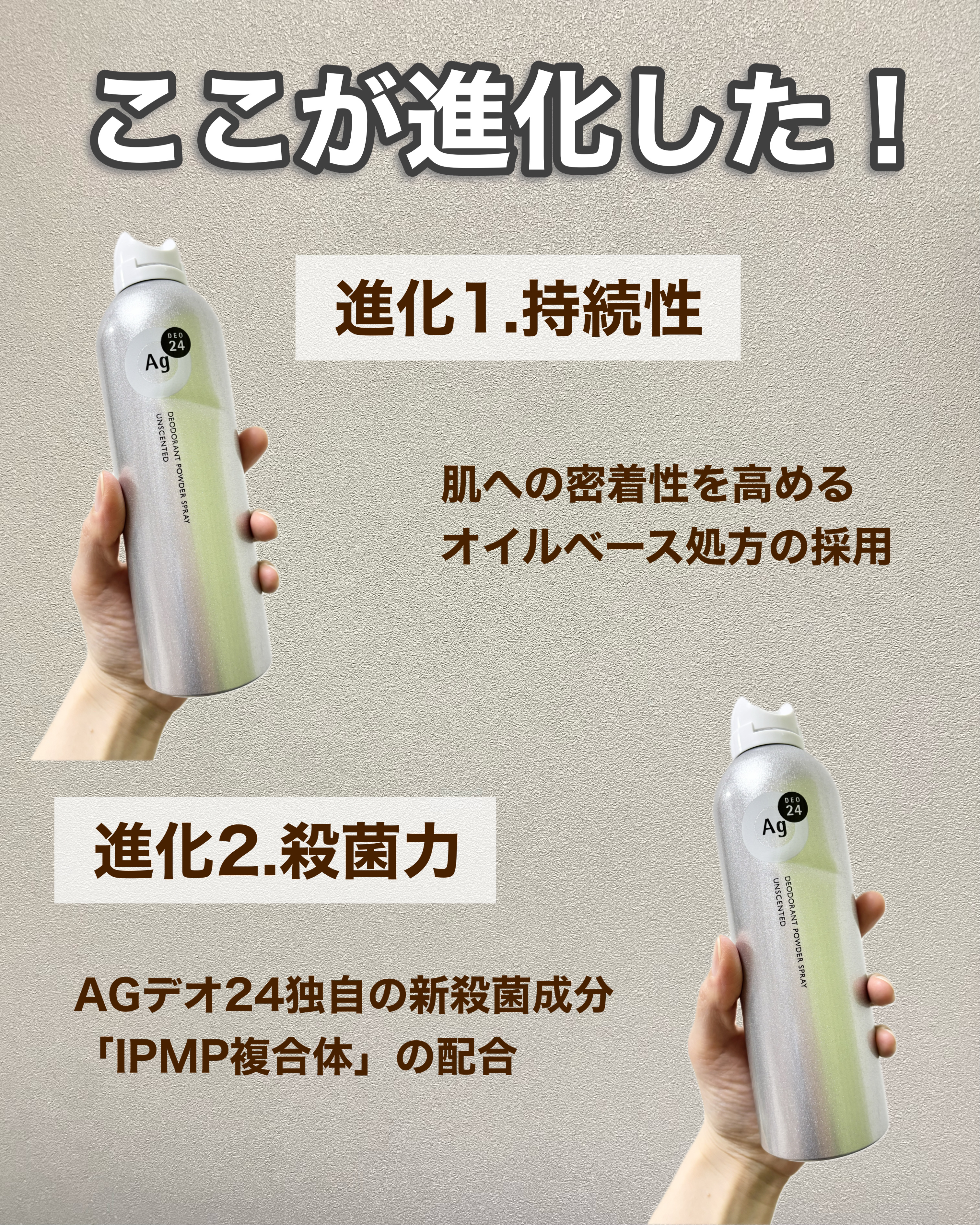 エージーデオ24史上、最高の持続力を実現👏 肌への密着性を高めるオイルベース処方の採用 ニオイ菌を殺菌し、汗臭だけじゃなくてストレス臭にも効果を発揮してくれるのがすごい!