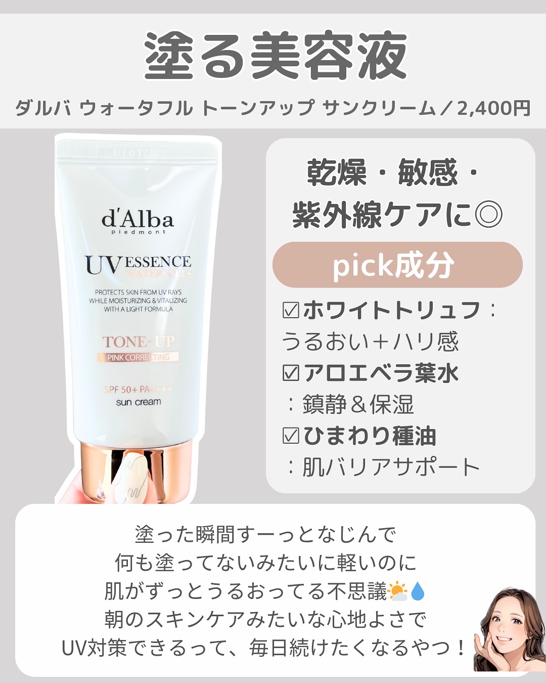 もっと見るおすすめアイテムダルバ×日焼け止めクリーム