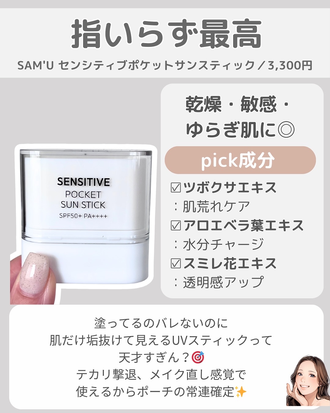 | スティックタイプで手を汚さずに使えます! 塗ったあともベタベタしないので使いやすいです! | 詳細を見る | ||