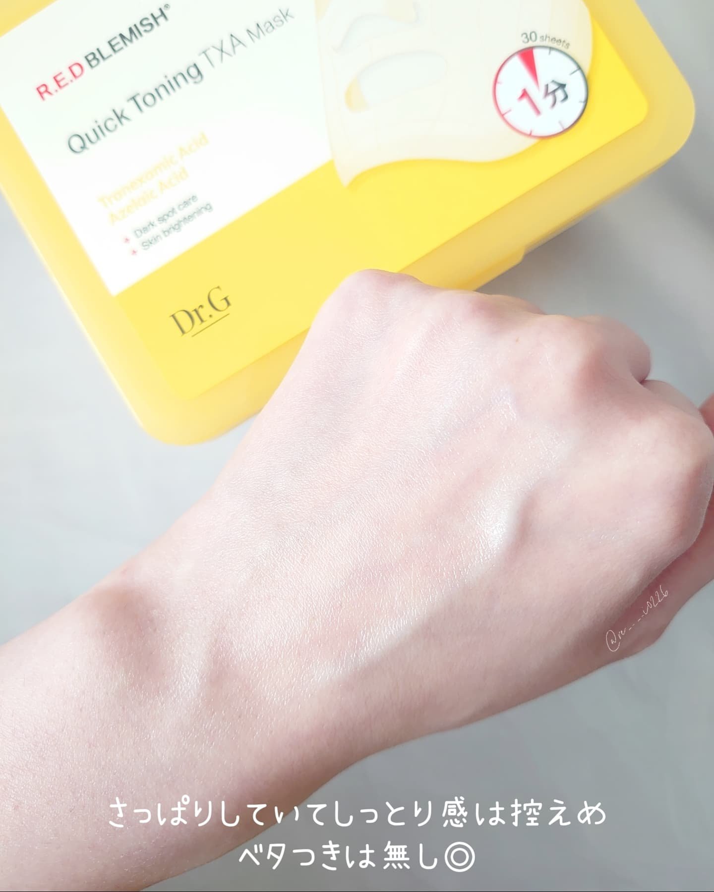 忙しい朝でも1分でツヤ肌に🎵『Dr.GレッドブレミッシュクイックトーニングTXAマスク』✨️【商品説明】トラネキサム酸×アゼライン酸の効果で肌の悩みを和らげさらにヒアルロン酸成分で潤いケアまで!ビタミンCとナイアシンアミド成分がくすんだ肌に潤...