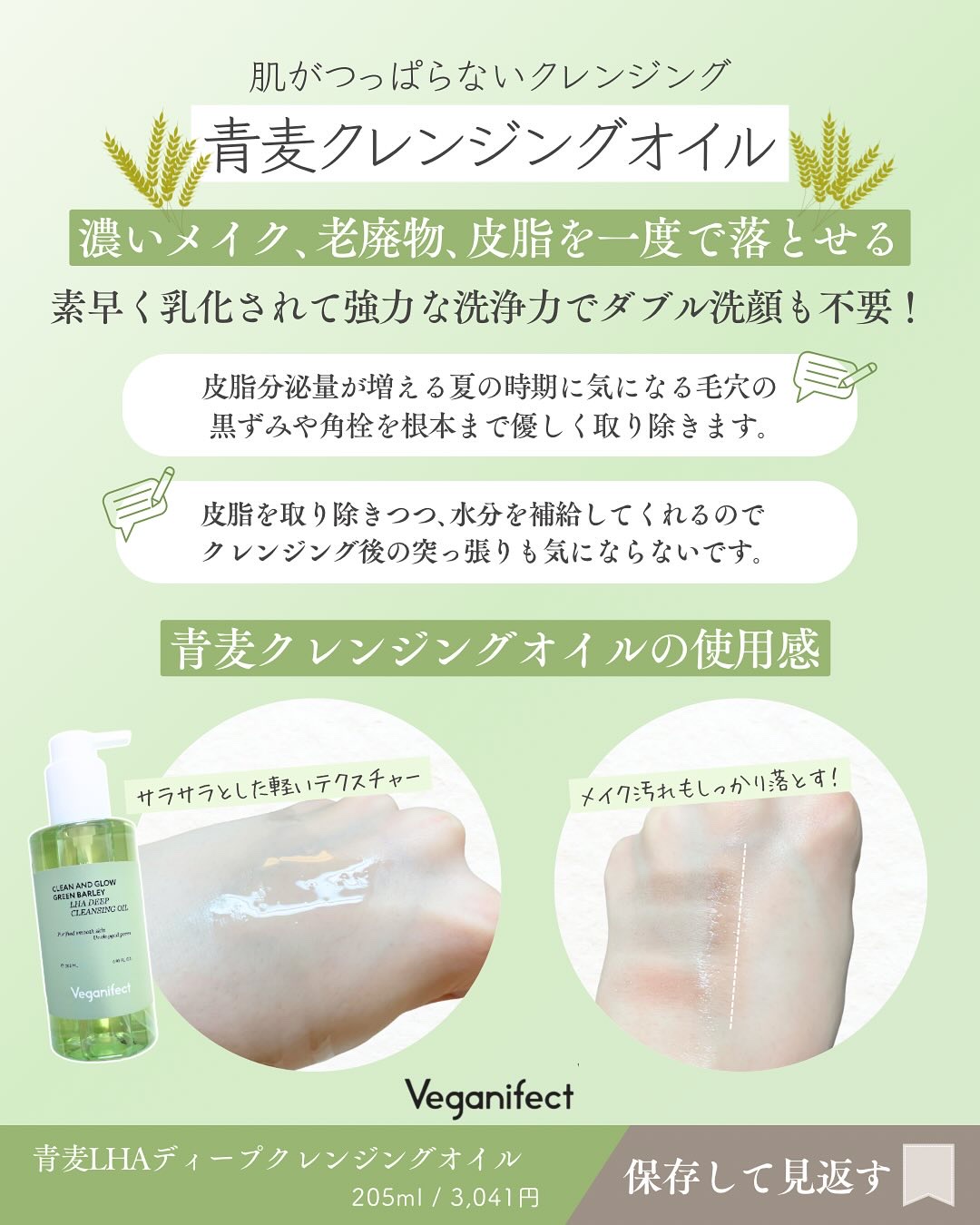 商品詳細情報Veganifect 青麦LHAディープクレンジングオイル