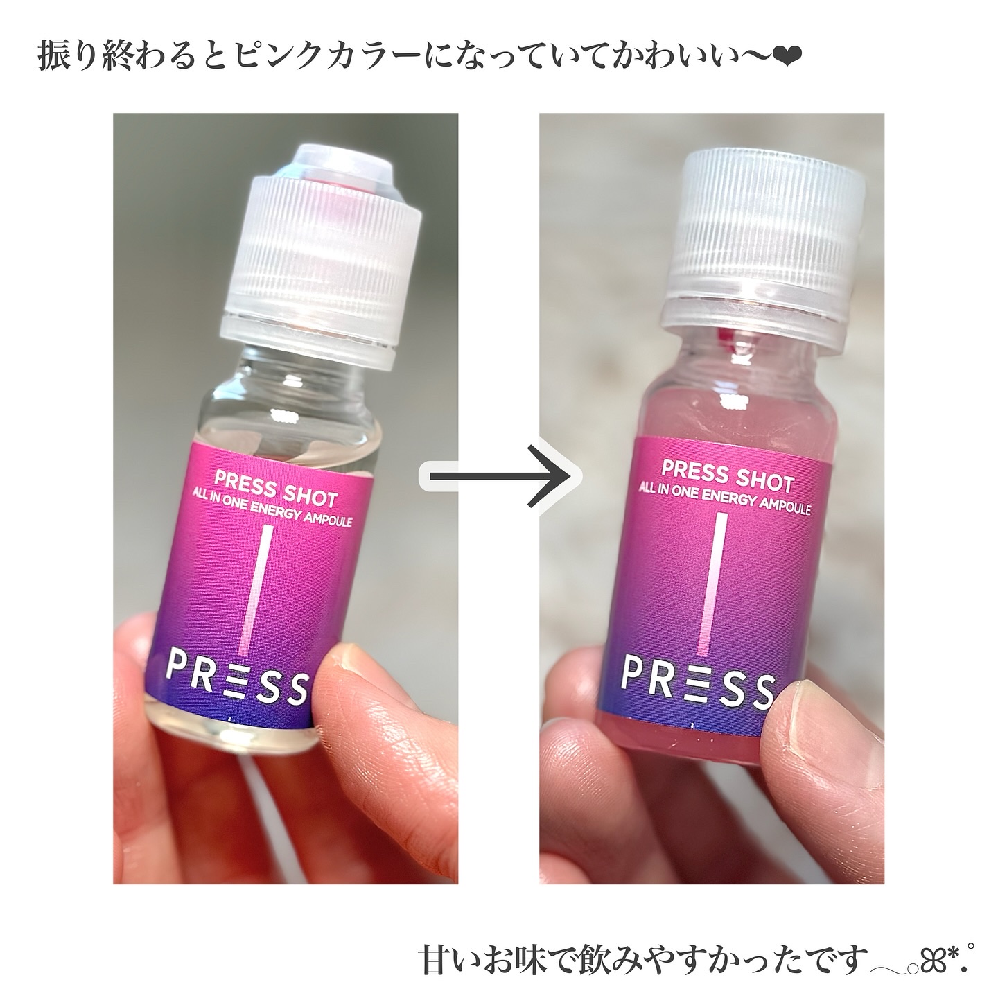プレスショット韓国のトップ薬局チェーンであるONNURIによって開発された飲むピンクビタミンです🩷飲む瞬間にキャップを押すとビタミンが液体に混ざり、シェイクしてフレッシュなビタミンドリンクが完成します。1日1本、飲み切りサイズなので手軽に続け...