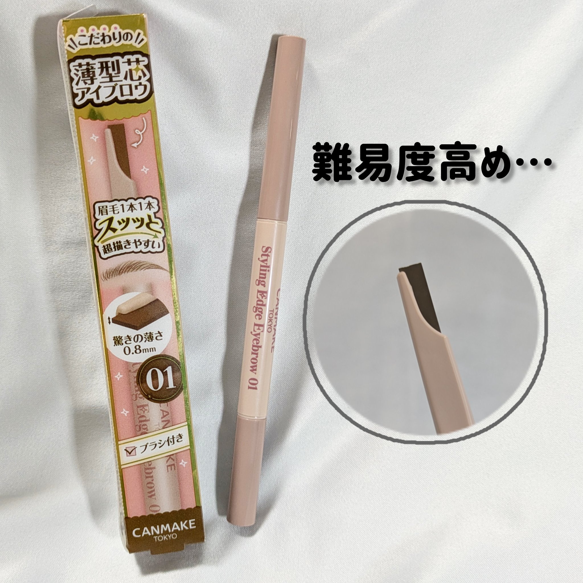 なんと0.8mmの薄型芯!?? キャンメイク スタイリングエッジアイブロウ 01 ナチュラルブラウン ¥770 めちゃくちゃ細くて細かいところも綺麗に描ける! 厚さは極薄だけど芯幅は4.0mmあるので安定して描けるよ! 水・汗・皮脂・こすれに強くて消えやすい眉尻もしっかりキープ♡ 反対側にはスクリューブラシも付いてるよ!
