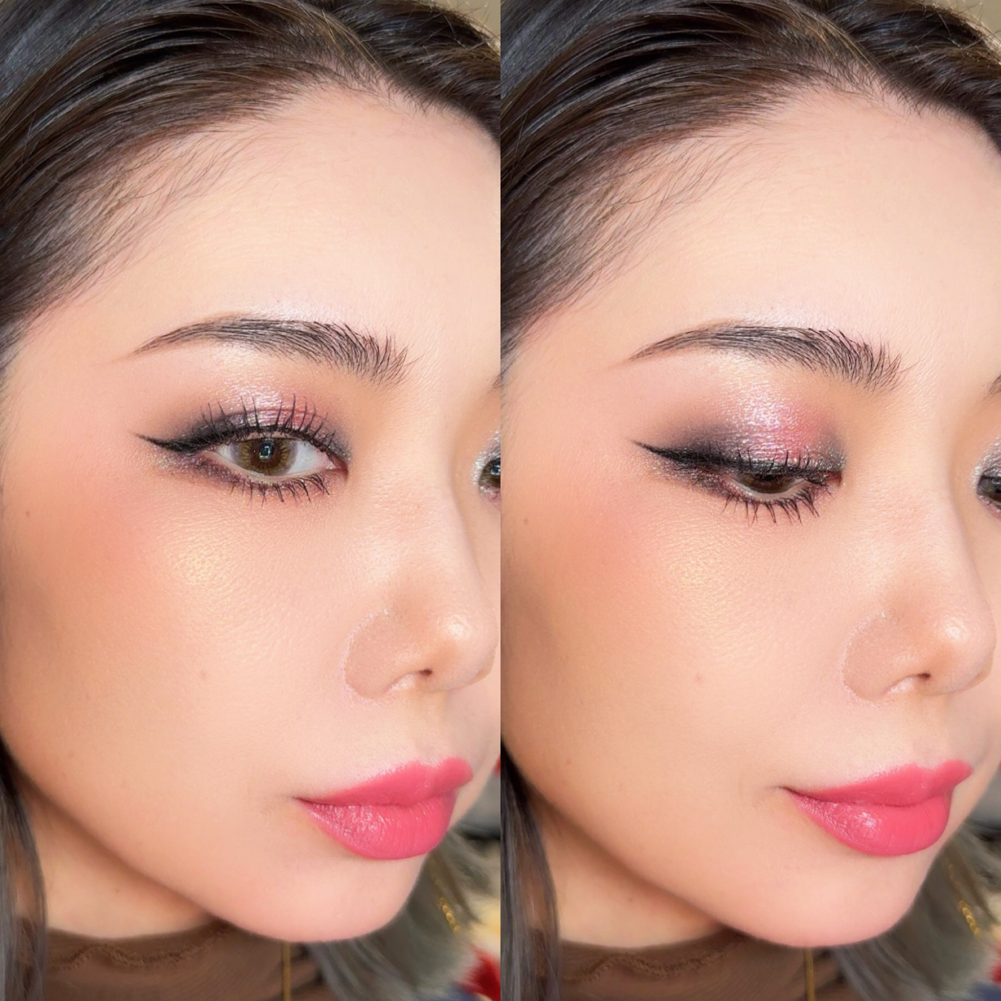 ブラックでガッツリ締めた目元とピンクのリップ、チークの組み合わせ可愛すぎます…💗 小物でブラックとピンク合わせるのはよくやりますがメイクで合わせても可愛いですね!