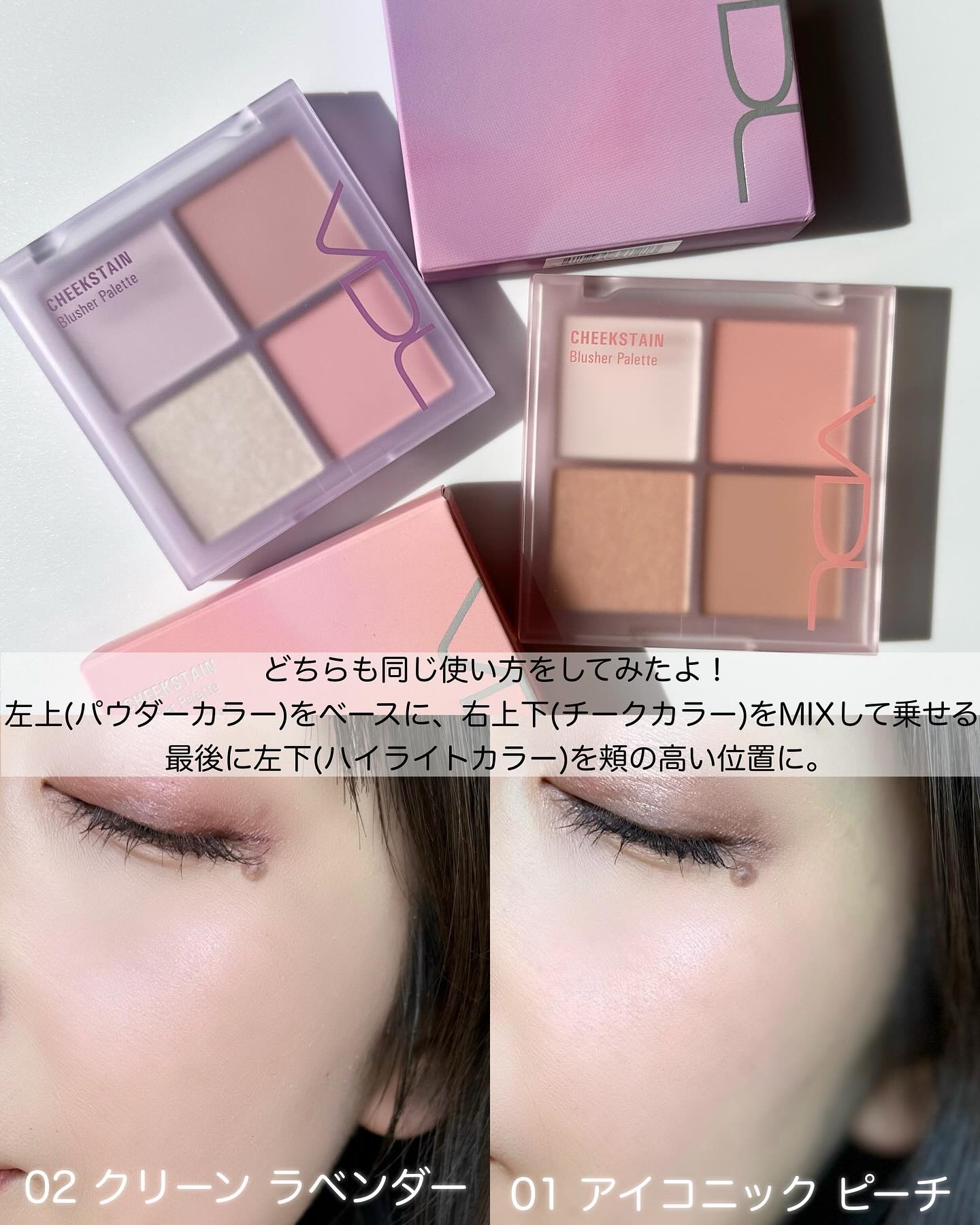#PR⋱どっちが好き??⋰☑️VDLチークステインブラッシャーパレット・01アイコニックピーチ・02クリーンラベンダー---VDLのチーク、以前バズった時に買ってからめっちゃ気に入って使ってるの!(ライクベージュっていうカラー)そのチークステ...