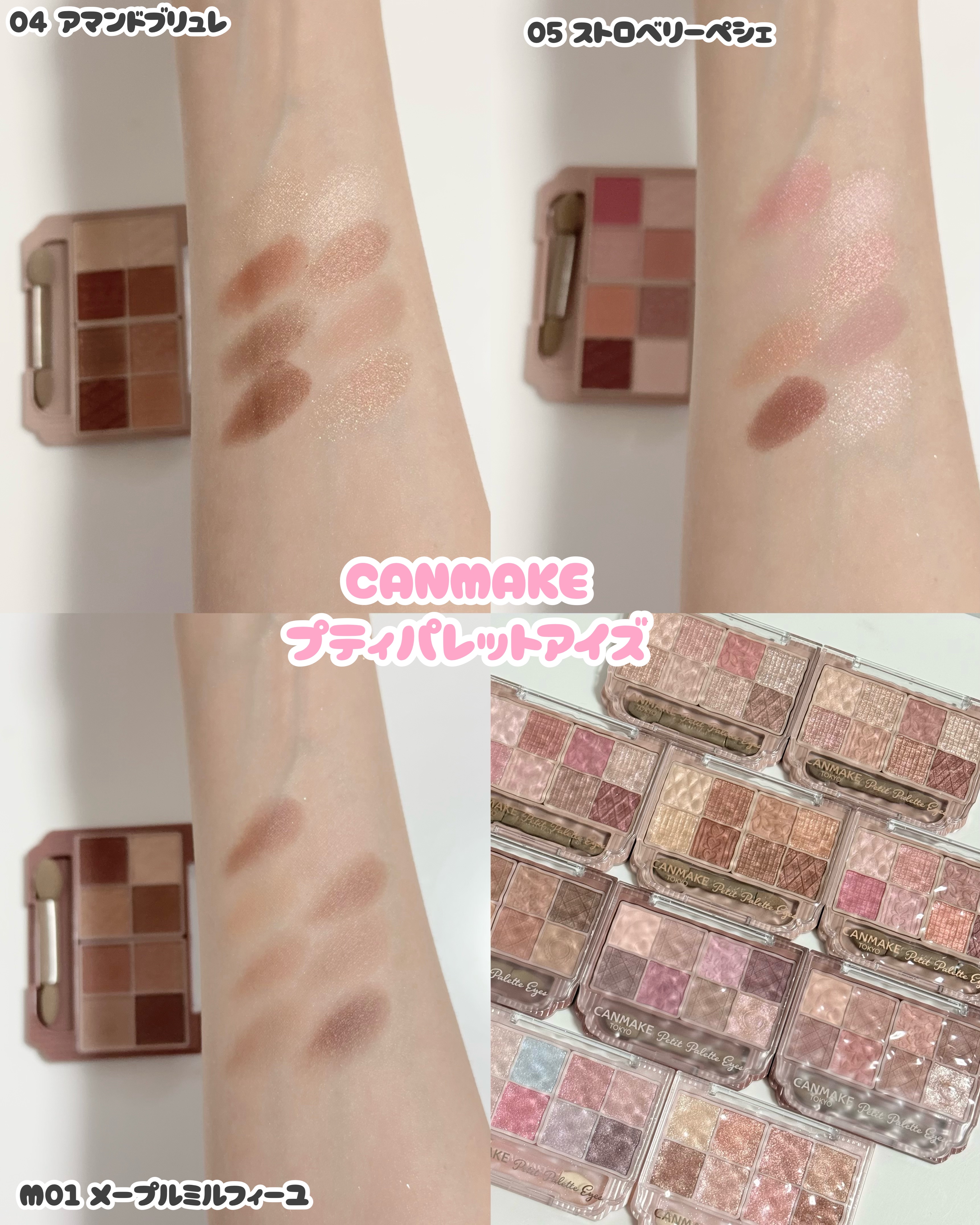 プティパレットアイズ全色比較してみたよ🩷ྀི良かったら保存して見返してみてねꕤ.·*.プティパレットアイズ全5色マットタイプ全3色¥1,078スパークリングタイプ全2色¥1,210スパークリングタイプだけ少しお高めだけど全部ラメ仕様だから納得...