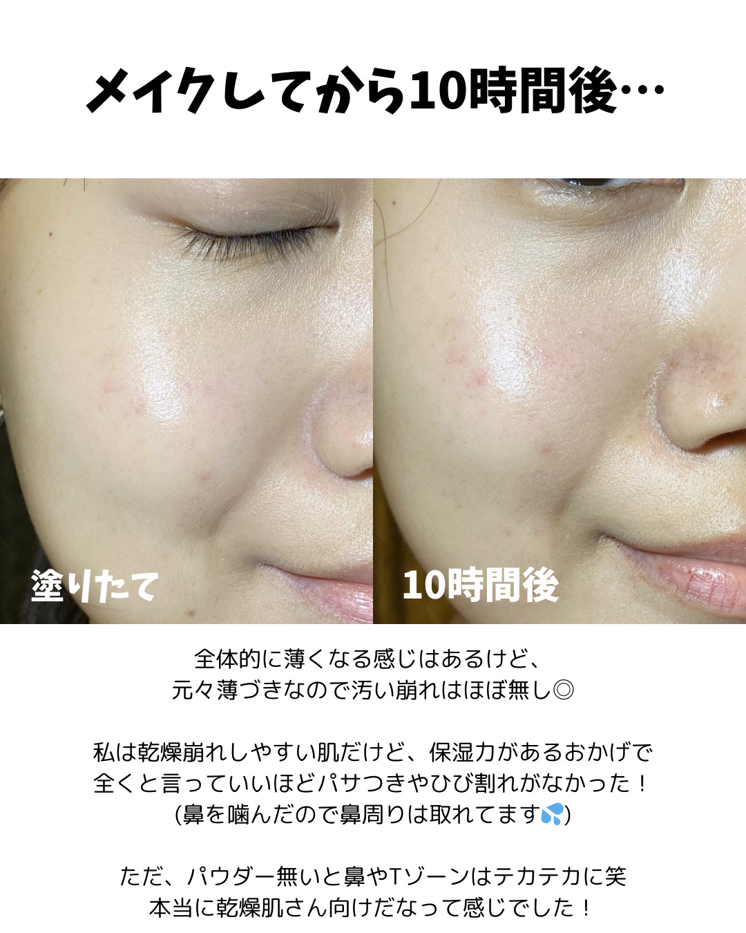 可愛すぎるクッションのパッケージを見つけて、ずっとKISS ME FELM のベース系は気になってはいたので思い切って買ってみたら、めちゃくちゃよかったので紹介します。 高いカバー力。ニキビ跡、毛穴が綺麗に隠れた。 粉質がしとさらで乾燥肌さんが好きな感じ。