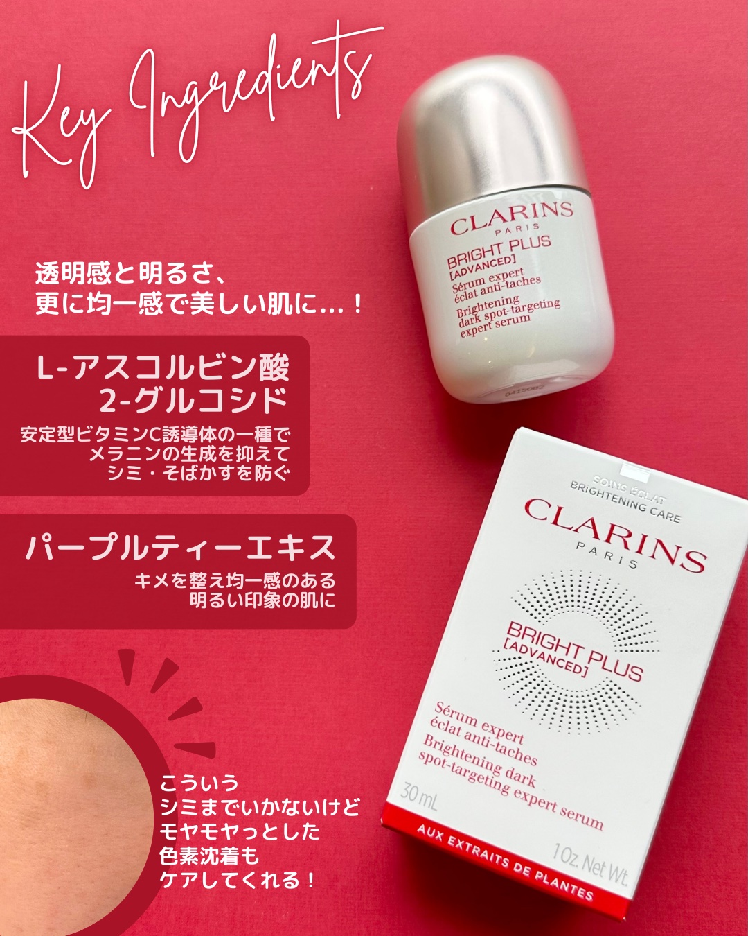 クラランスさんにいただきました。ブライトプラスブライトニングDSTセラム30mL【医薬部外品】を紹介します。丸みがあってころん。クラランスの赤とホワイトに、キャップがピンクゴールドカラー。外箱の中側までこってあります。さっと手に出して手にとれ...