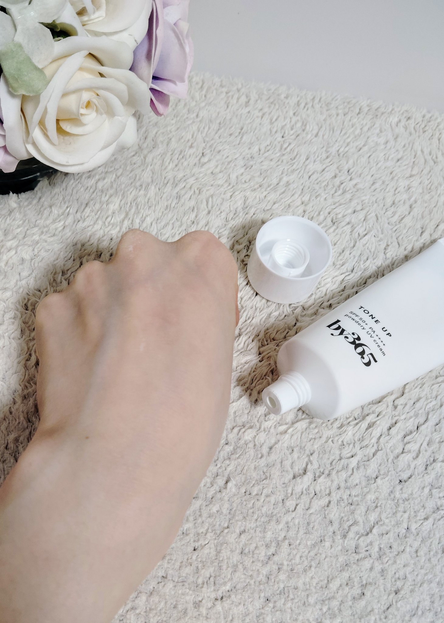 ナリスアップby365パウダリーUVクリームトーンアップ軽い付け心地で外側サラサラ内側しっとり肌が続き自然なトーンアップ効果も♡SPF50+PA++++で紫外線対策もバッチリ👌#PR#shabonモニター_by365パウダリーUVクリームトー...