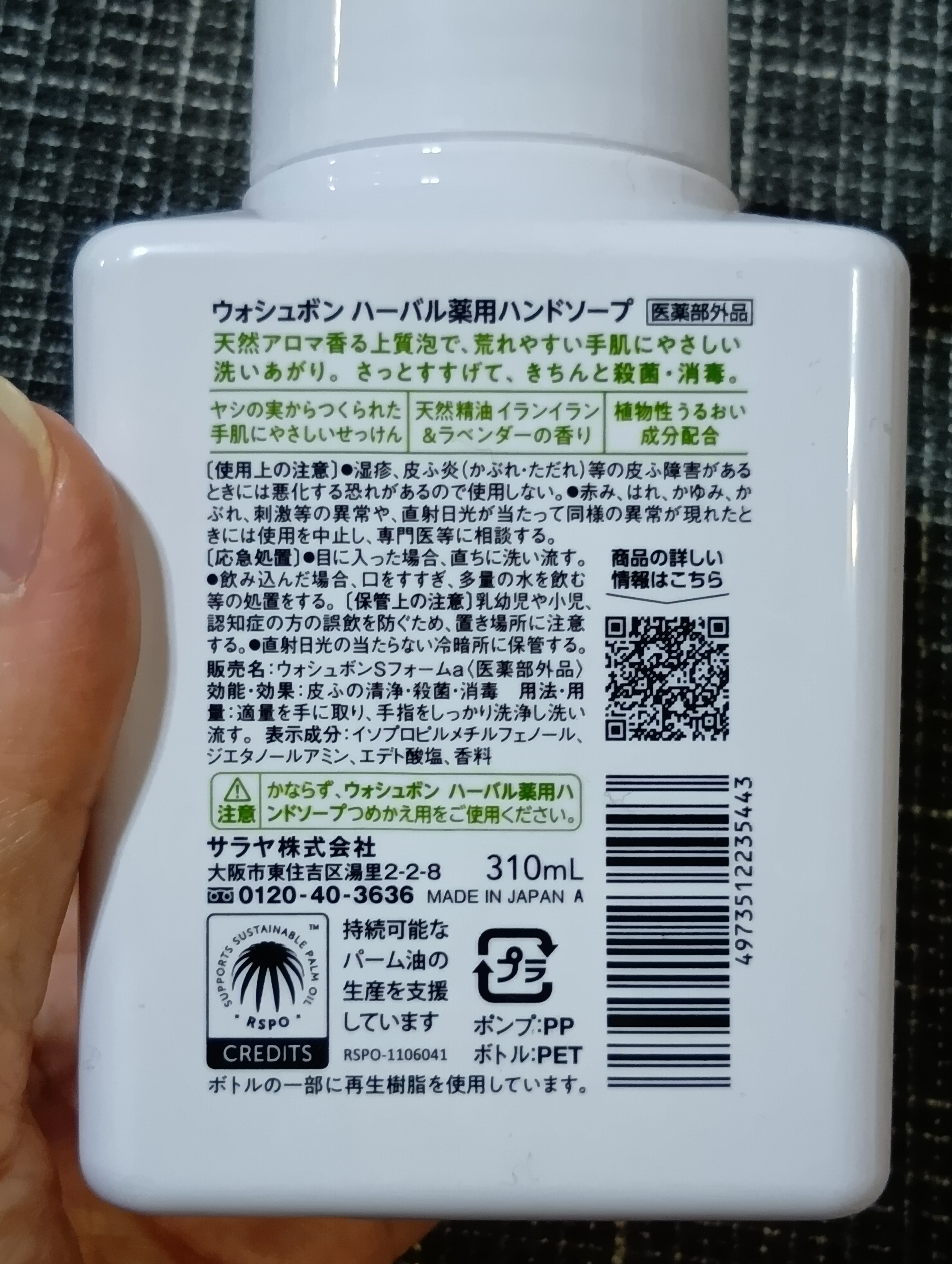 商品詳細情報サラヤ ウォシュボン ハーバル薬用ハンドソープ