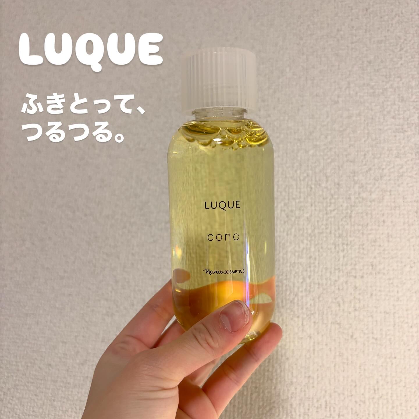- ■毛穴、ザラつき、くすみ※1が気になる方に、不要な角質をふきとって、つるんとなめからかな肌へ。 ナリスのふきとり化粧水は、5年連続国内売上シェアNO.1※2 肌にとって余分な老化角質をおだやかに取り除き、素肌が持つ本来の美しさを引き出すルクエのコンク(ふきとり用化粧水)はナリスの80年以上続く研究開発によって誕生しました。 ●キレイのこたえは、ふきとり化粧水という選択。 植物保湿成分で古い角質をやさしくオフして、次に使うスキンケアアイテムのなじみをサポート。日々変化する肌をすこやかに整えます。毎日の“ふきとり習慣”で理想の肌に近づきましょう。 ●厳選した3つの植物の力で角層ケアをサポート。 ・柔らかくほぐして、取り除きやすくする「ヨクイニンエキス」※3 ・潤いを与え、健康的な角層へ導く「月見草エキス」※4 ・潤いを逃さず閉じ込める「白花豆エキス」※5 【使用方法】 1. 朝晩2回、洗顔後の後に。 2. コットンに8〜10滴程度(500円玉大)を含ませます。目安は、コットン裏側に染み込む程度。 3. できるだけ力を入れずに、やさしくなでるように顔全体を拭き取ります。 ※1古い角質による ※2ナリス化粧品 2015~2019年度 「ふきとり用化粧水」販売動向調査 TPCマーケティングリサーチ株式会社調べ※3 ハトムギ種子エキス(保湿成分) ※4 メマツヨイグサ種子エキス(保湿成分) ※5ベニバナインゲン種子エキス(保湿成分)