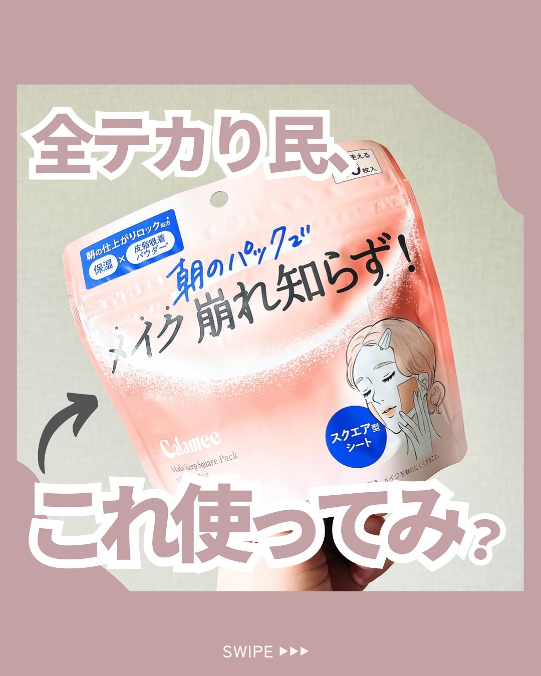 🎀@calamee_official@cchannel_lemonsquareCalameeメイクキープスクエアパック朝のメイク前にいつものスキンケアにプラスして使うパックです✨カラミンパウダー*がついていて、皮脂が出やすい部分に使うと、時間...