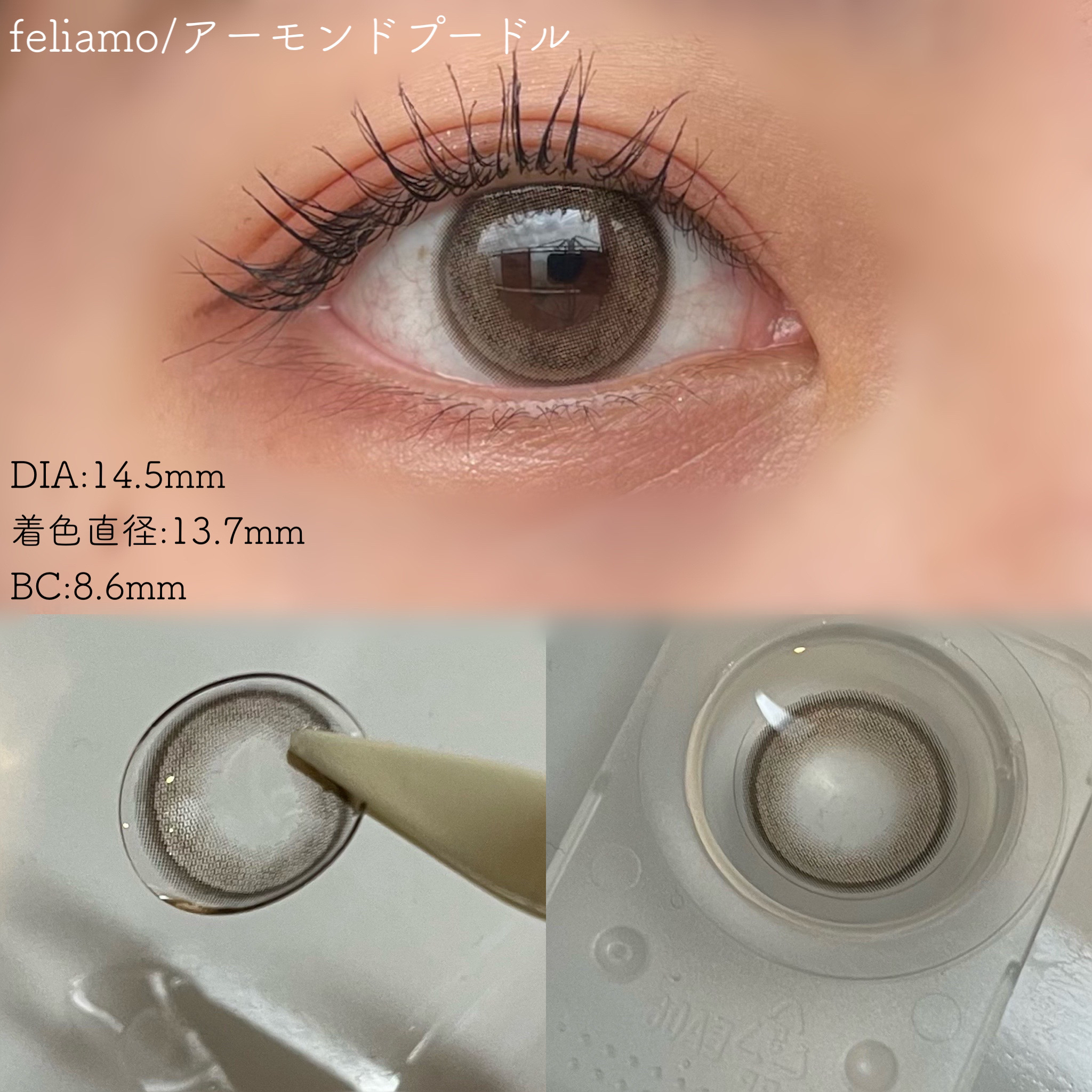 feliamoから待望の新色が4/18(金)〜発売💖#1day#1month同時発売✨⚫︎AImondPoodle(アーモンドプードル)DIA14.5mm着色直径13.7mm色素薄い系ちゅるんカラコン!瞳に馴染み、細フチでナチュラルに盛れる🤍...