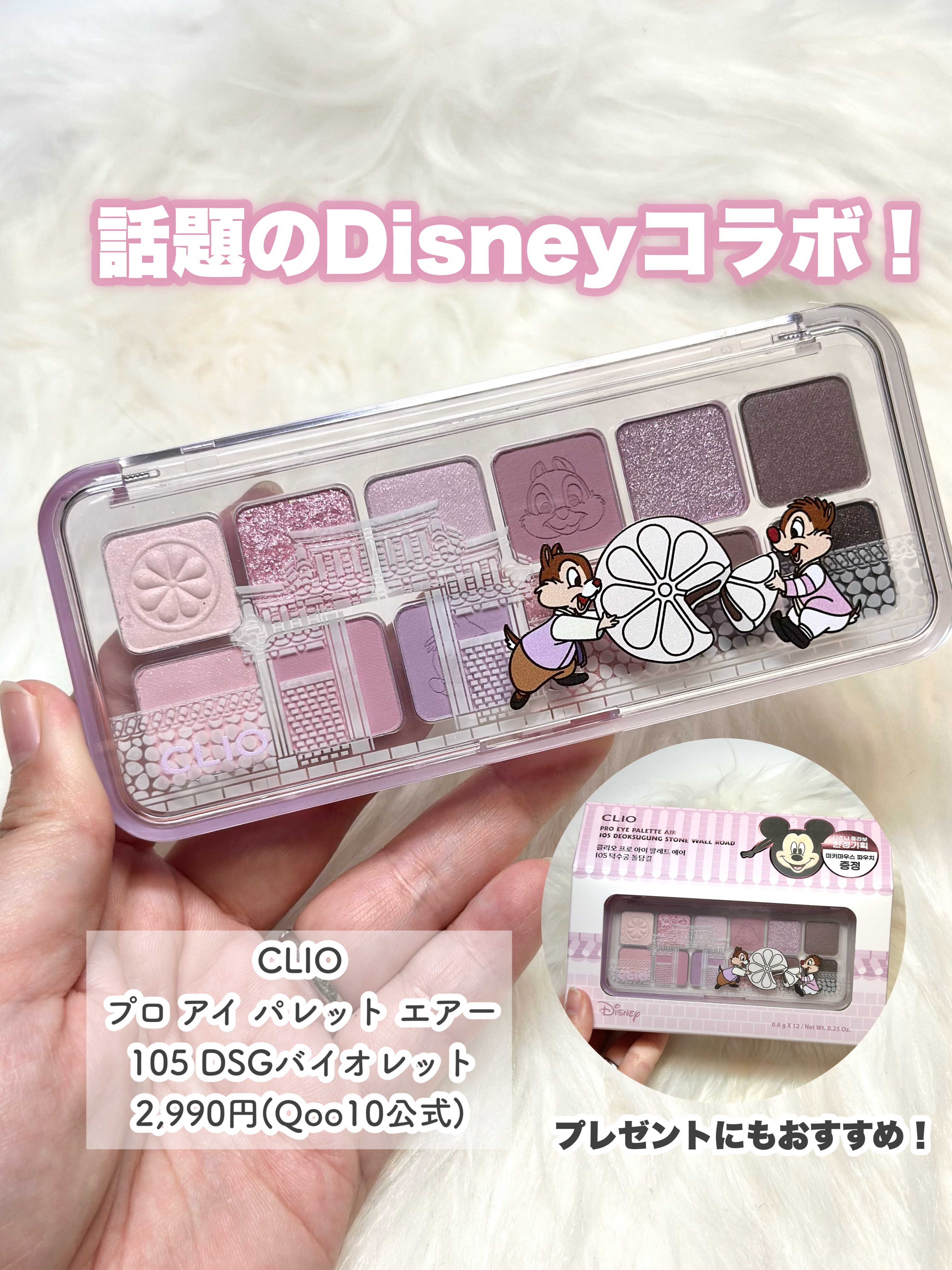 \ディズニー×CLIOのアイパレット💗/※以前にCLIO様に商品提供いただいたアイテムになります。⚫︎CLIOプロアイパレットエアー 105番¥3,960(ちょく調べ)\POINT/▼ふんわり軽い粉質ふわふわ軽くグラデーションしやすい粉質で、...