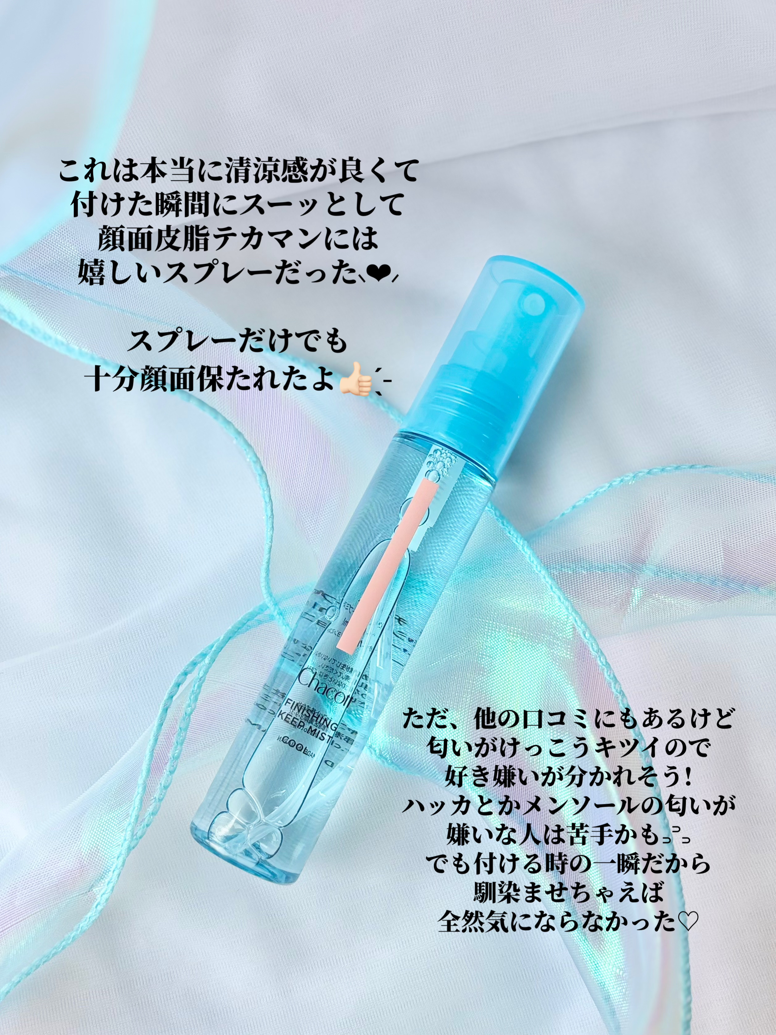 ⋆⸜⸜チャコット株式会社様より商品提供頂きました¨̮♡ありがとうございます*𓆸⋆*⸝⸝⋆𖧷𖦞𓅿𓈒𓏸チャコット・コスメティクスフィニッシングキープミストクール汗ばむときに、ムレるときに、気持ち良いクールな清涼感をプラス。瞬間冷却:メントー...