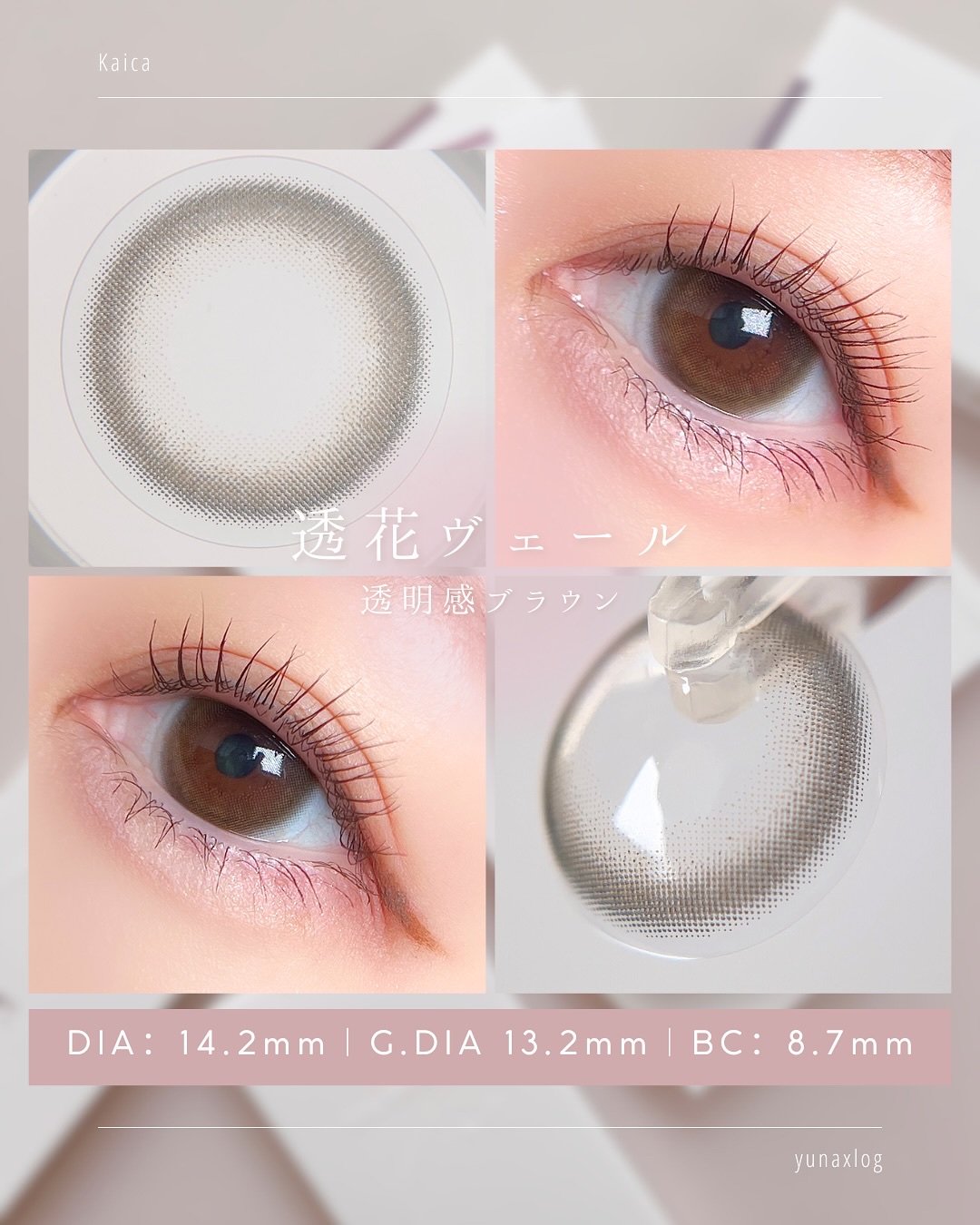 - 『Kaica』のレンズは全て「人口っぽさ」をできるだけなくし、間近で見てもカラコンをしていることがバレにくいデザイン設計。 まるでオーロラのように美しい彩りのヴェールを瞳にまとったかのような仕上がりになるのが特徴です。 裸眼の色に左右されることなく、黒目さんでも茶目さんでも、色が浮くことなくキレイに色が溶け込むように馴染むため、裸眼を活かしながら透明感を瞳に与えることができます。 2025年4月発売 <月絃ベージュ> 今っぽトレンドのトーンアップベージュ。愛らしさをプラスしてくれる、ちゅるん系レンズ <咲初ショコラ> 瞳をきらっと魅せる王道ダークブラウン。どんなシーンでも迷わず使える、実力派レンズ。 <淡花ヌード> 儚げでミュートな淡色ブラウン。とことん裸眼に馴染む、ナチュラルを追及したレンズ。 <透花ヴェール> こだわりの透明感を叶える幻想的なヘーゼルブラウン。どんな瞳も儚く魅せる、色素薄い系レンズ。 <優花ブラウン> 瞳のトーンアップを演出する柔らかいライトブラウン。自然に瞳を印象づける、サークルレンズ。 <優月ブラック> 瞳に透明感を与える優しげなブラック。自然に瞳を印象づける、サークルレンズ。 カラーコンタクトレンズの不適正使用による眼障害の危険性等などがあります。 ●コンタクトレンズは高度管理医療機器です。不十分な洗浄・消毒など不適切なケアや、長時間・交換期間を超えた装用により、アレルギー性結膜炎、角膜感染症、角膜潰瘍等の重篤な眼障害が発生する危険性があります ●ご使用前に取扱説明書を確認してください 使用上の留意事項 ●眼科医院等を受診してからお求めください ●眼に異常を感じたら直ちにレンズ使用を中止し、お近くの眼科等で診察を受けてください ●医師の指示にしたがってご使用ください ●コンタクトレンズを装用する場合、自覚症状がなくても、眼科医院等での定期検査を受けてください ●レンズに不具合がある場合は使用しないでください