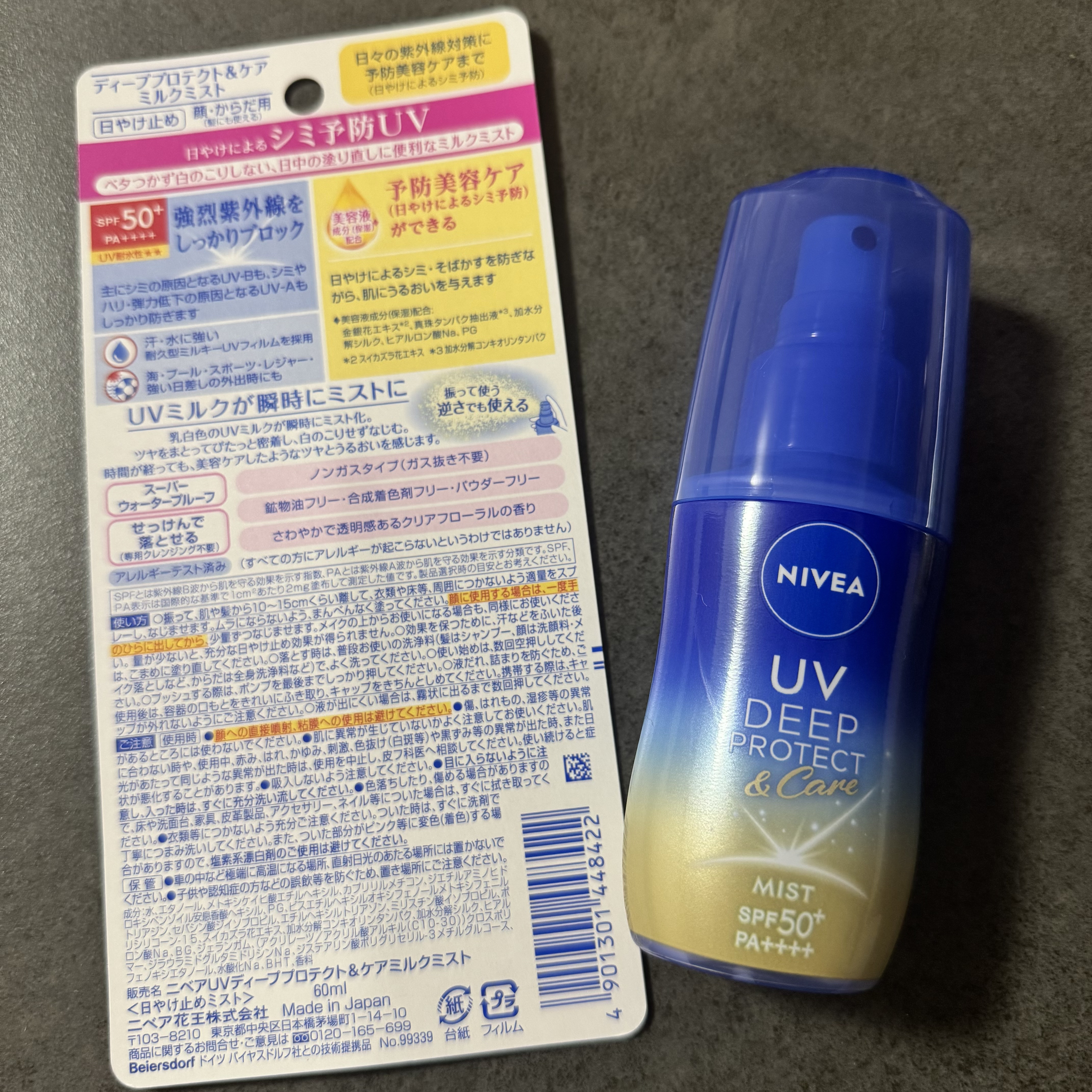 「ニベア花王」さまから商品提供をいただきました。日焼けによるシミを防ぐ💥NIVEA/ニベアUVディーププロテクト&ケアジェルニベアUVディーププロテクト&ケアミルクミストSPF50+PA++++UV耐水性★★スーパーウォータープルーフ最強シリ...
