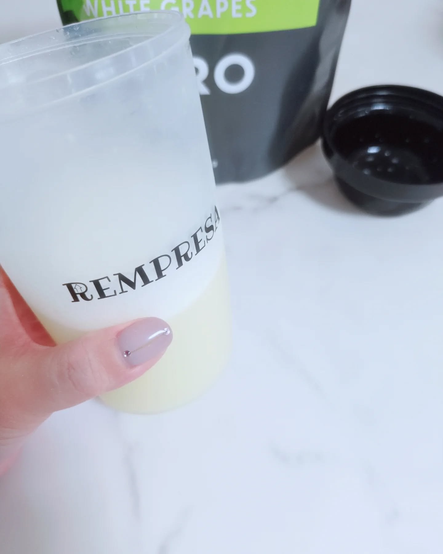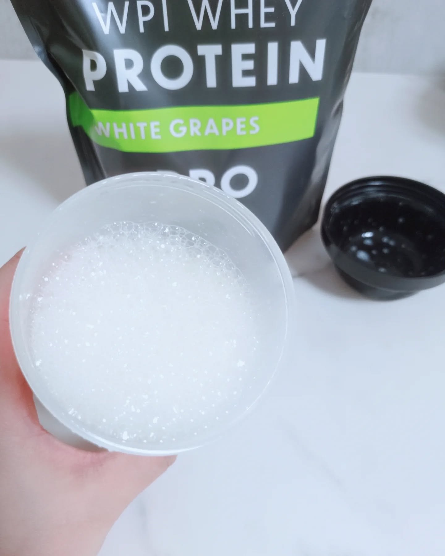 白ブドウで飲みやすいだけじゃなく 使用する原材料にもこだわっていてタンパク質の原料には、高品質のホエイプロテインWPIを100%使用✨ 1日分のマルチビタミンや食物繊維、乳酸菌なども配合しており、まさに「ボデイが喜ぶプロテイン😄 粉も水に溶けやすくてダマにならないしさっぱりとしていてフルーツジュースを飲んでるような味だったよ!🥰