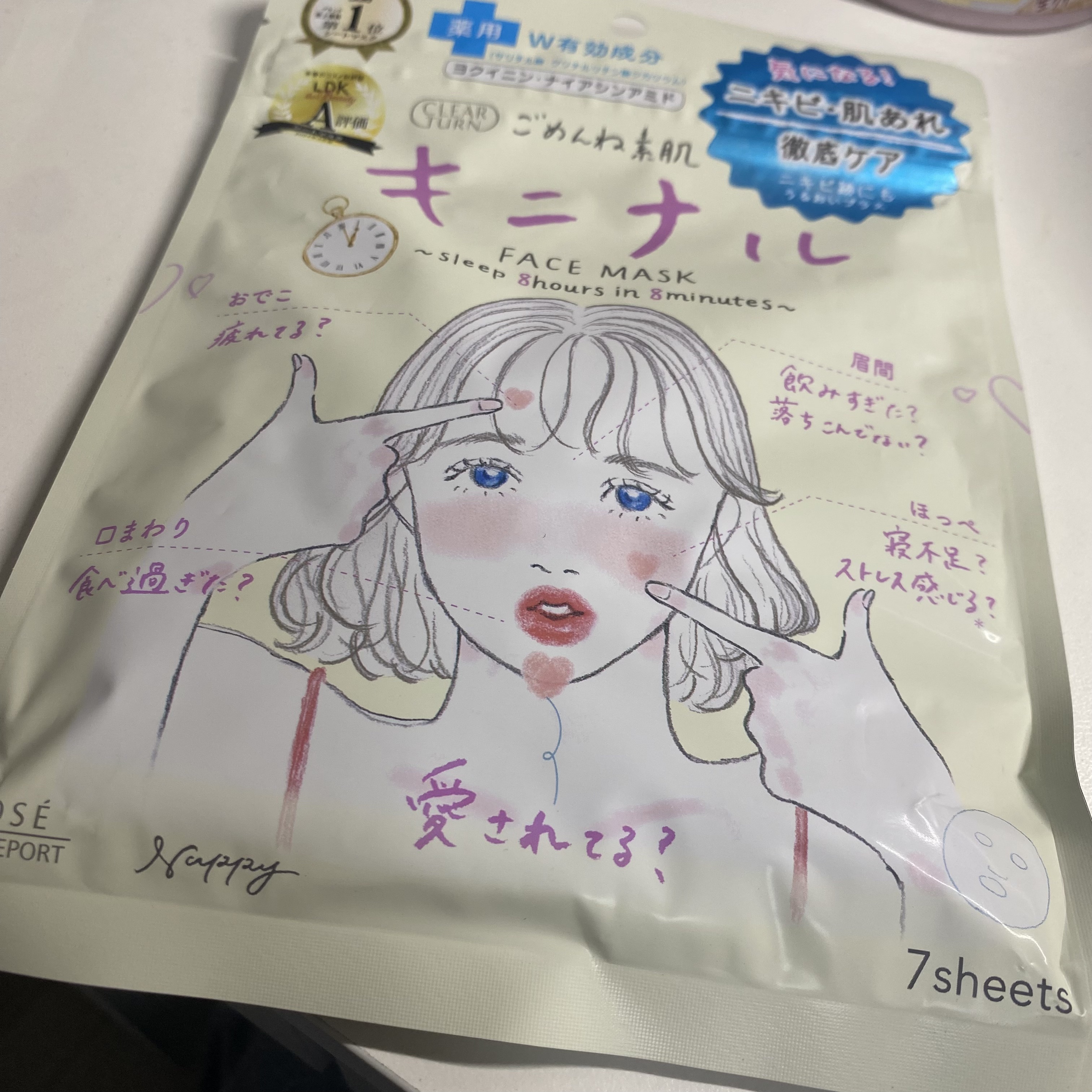 お肌が不安定な時の救世主🌟 クリアターン ごめんね素肌 キニナルマスク すぐ赤みが引いてお肌が落ち着いてくれるので、お肌がちょっとでも荒れそうな時にすぐ使っています🌟 アクネ菌を殺菌して、肌の炎症を抑えニキビを防ぎ、健やかななめらか肌に🌟