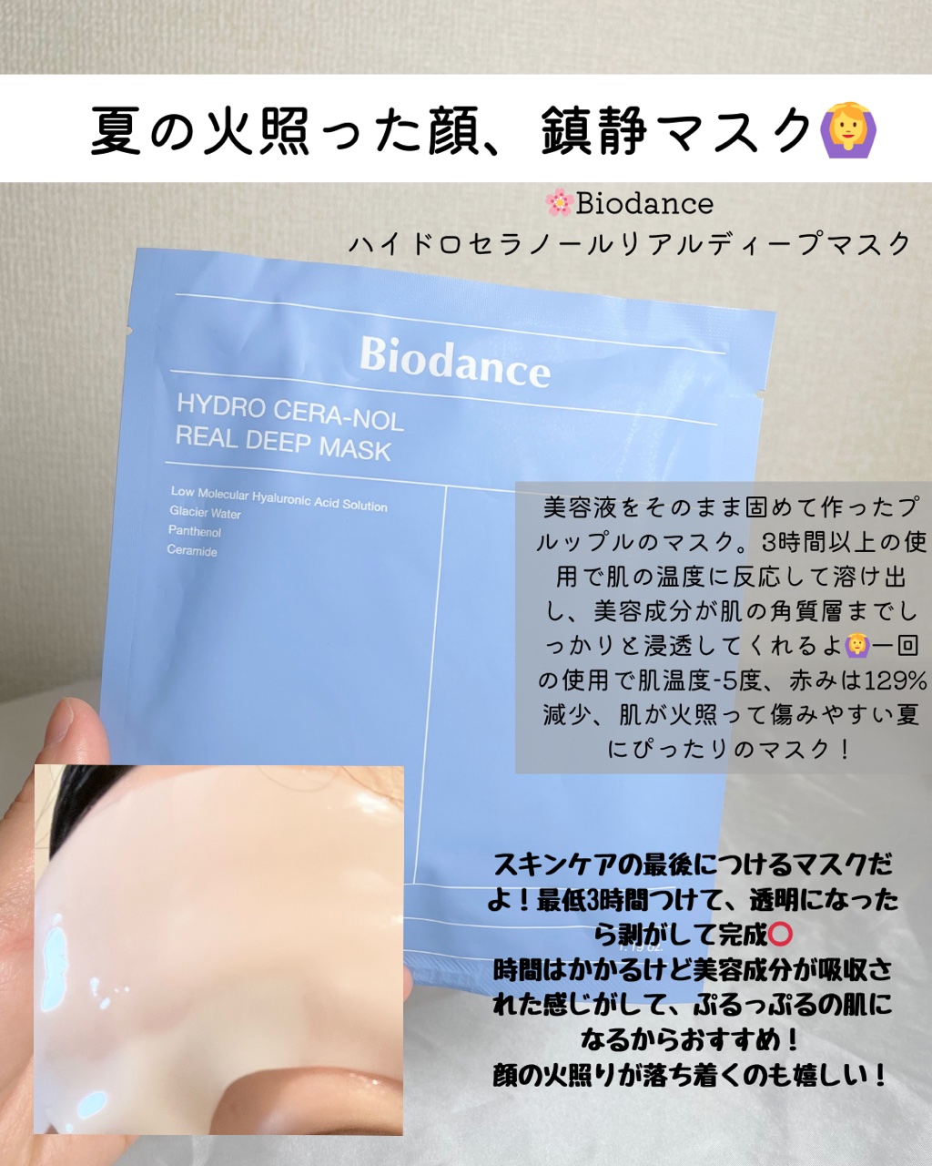 Biodance ハイドロセラノールリアルディープマスクみなさん、こんばんは☺️今回は、Biodance ハイドロセラノールリアルディープマスクを使いきりました。しっかりお肌のケアをしたい日に。3時間以上の使用をオススメします。ぷるんとした...