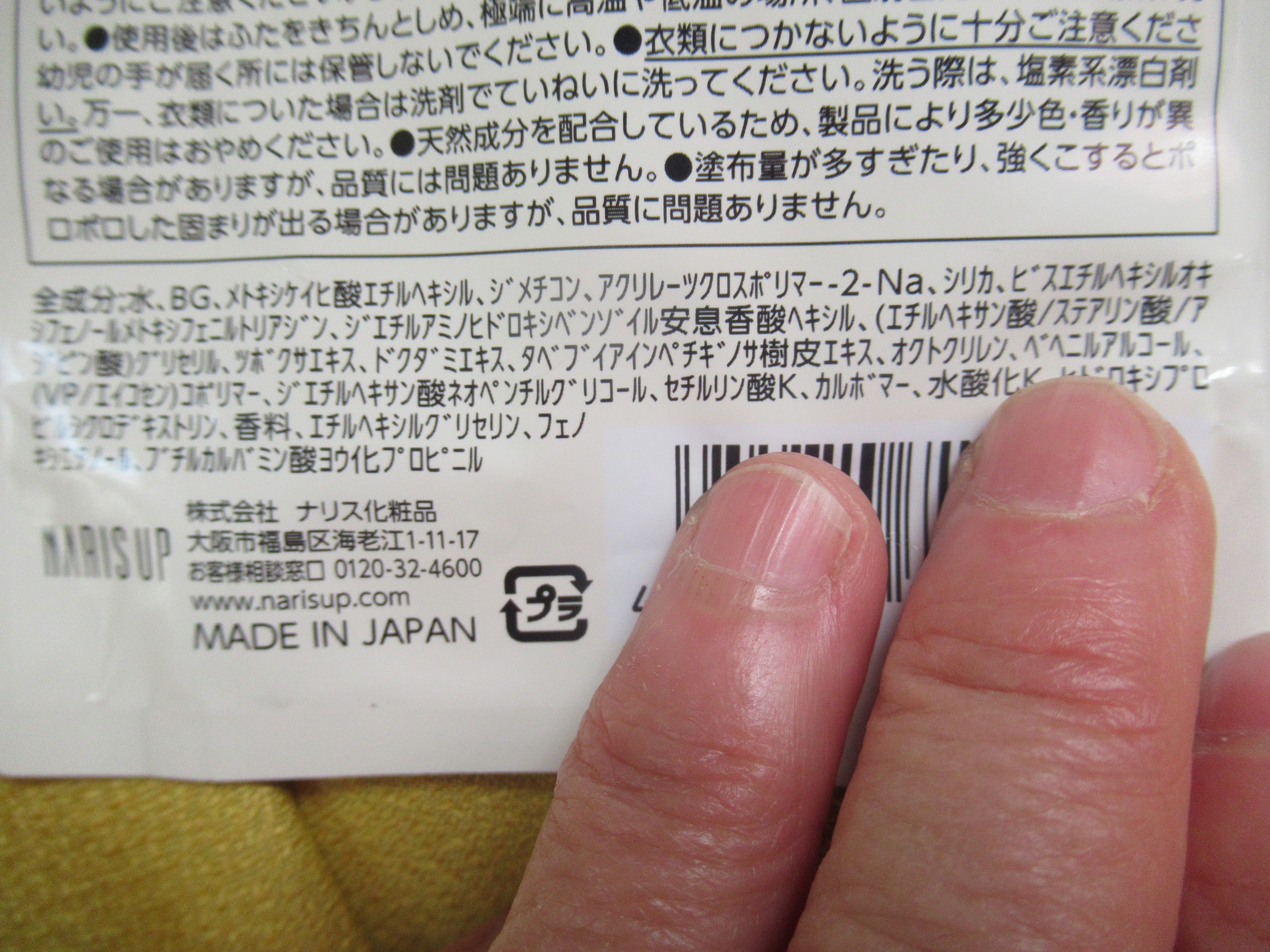 - <60g> シリカ、水、ベヘニルアルコール、BG、ジメチコン、カルボマー、水酸化K、フェノキシエタノール、香料、メトキシケイヒ酸エチルヘキシル、エチルヘキシルグリセリン、ツボクサエキス、ドクダミエキス、ブチルカルバミン酸ヨウ化プロピニル、オクトクリレン、ビスエチルヘキシルオキシフェノールメトキシフェニルトリアジン、ヒドロキシプロピルシクロデキストリン、(エチルヘキサン酸/ステアリン酸/アジピン酸)グリセリル、ジエチルアミノヒドロキシベンゾイル安息香酸ヘキシル、ジエチルヘキサン酸ネオペンチルグリコール、アクリレーツクロスポリマー-2-Na、タベブイアインペチギノサ樹皮エキス、セチルリン酸K、(VP/エイコセン)コポリマー