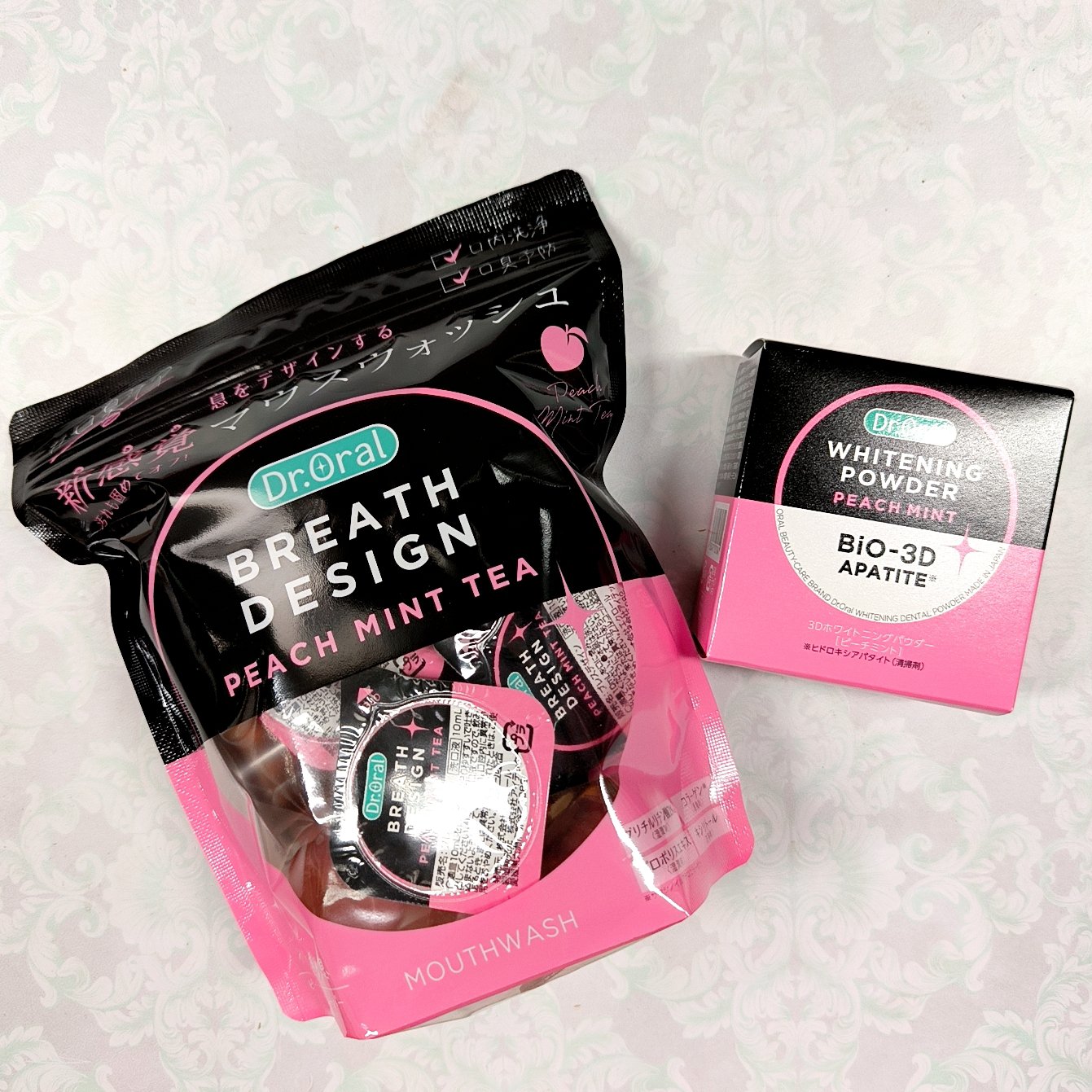 Dr.Oral(ドクターオーラル)ブレスデザイン(マウスウォッシュ)と3Dホワイトニングパウダーピーチミントをお試しさせていただきました。ブレスデザインは嬉しい個包装。持ち運び出来るので、外出先でもさっと使えて便利です。1回分を口に含み、約2...